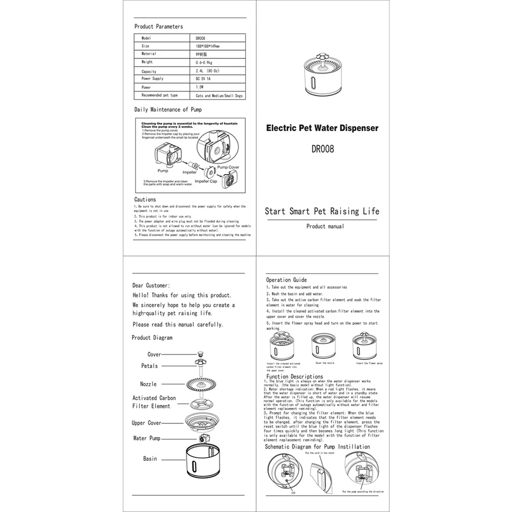 3. Дизайн водного режима: цветочный водопад: подходит для домашних животных с длинными волосами; Цветочный пузырек: такие нежные Домашние животные, как этот, и птицы любят купаться под водопадом; Мягко фонтан: много воды, идеально подходит для домашних животных, которые любят много пить