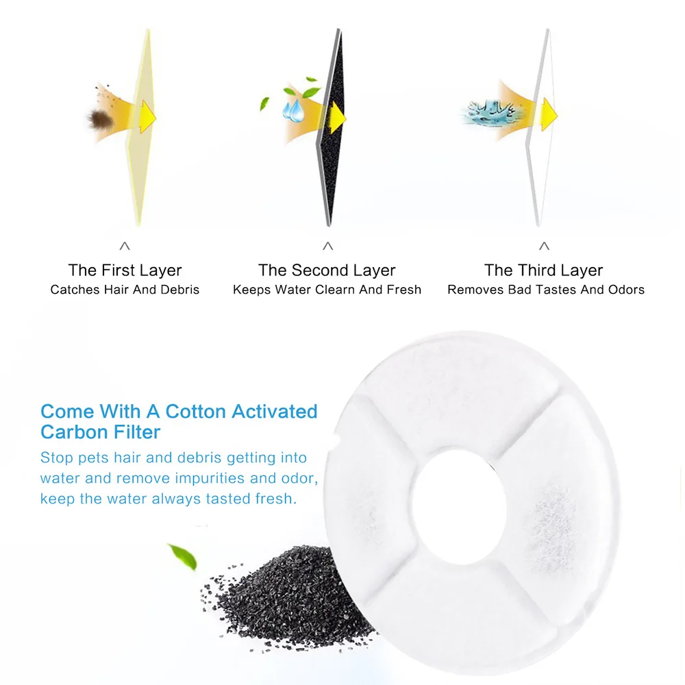 Уникальный сменный дизайнерский фильтр эффективно фильтрует волосы, запах и хлор. Следовательно, фонтан может дать чистую воду для домашних животных и уменьшить риск развития болезни. Угольный фильтр помогает удалить запахи и плохой вкус.