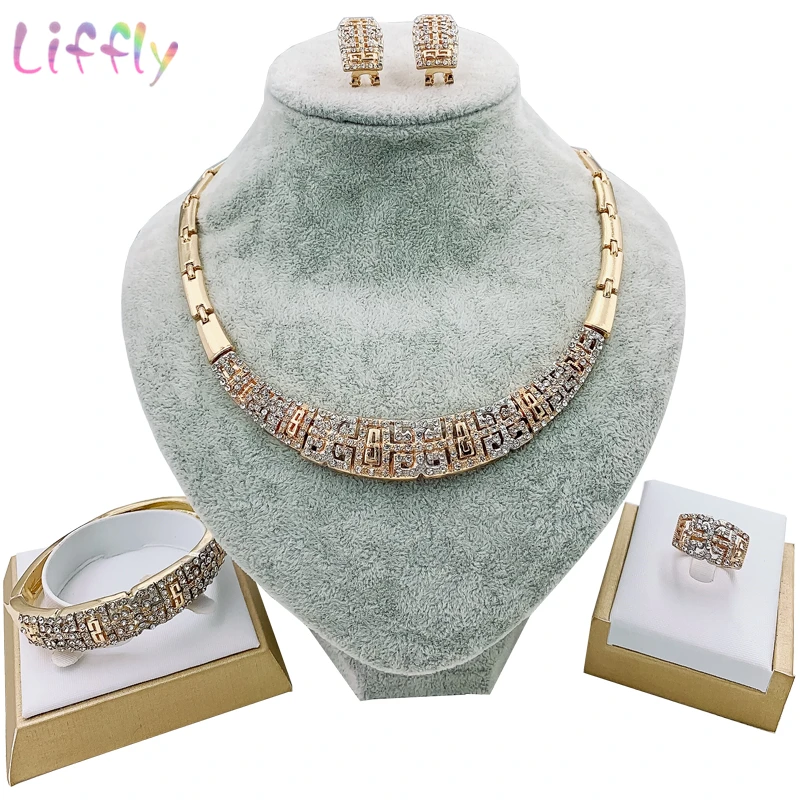 Классические Ювелирные наборы Дубай ожерелье Винтажный стиль кристалл серьги кольцо браслет юбилей праздник элегантные женские ювелирные изделия