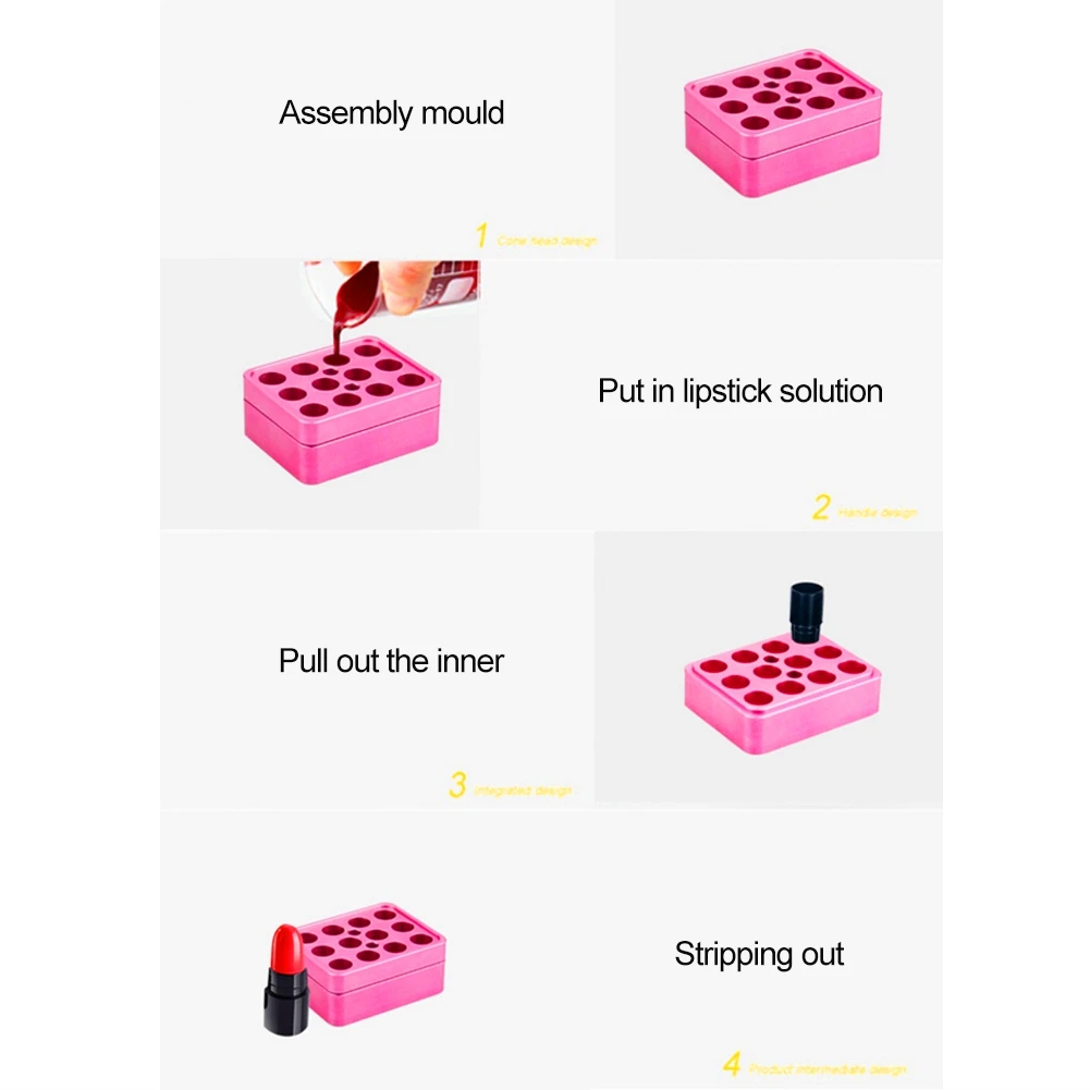 Если губная помада не проста в выпуске из формы, пожалуйста, аккуратно нажмите на устройство для сброса формы или другие инструменты.