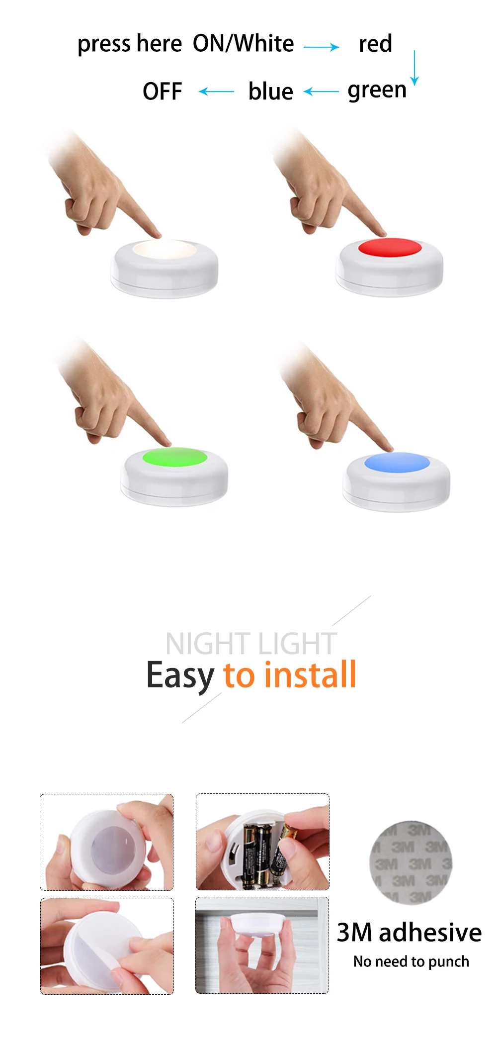 Особенности: Режим управления: ручное управление и пульт дистанционного управления. Пульт дистанционного управления (приобретается отдельно) для легкой регулировки яркости, светильник и светильник режима переключения цветов. Пульт дистанционного управления имеет эффективный радиус действия 8 метров, и может управлять десятками ламп одновременно в пределах определенного диапазона. (Пожалуйста, приобретите Ночной светильник RGB или пульт дистанционного управления по мере необходимости) Легко устанавливается двусторонний скотч без сверления. Подходит для патио, столовых, ванных комнат, входов, балконов, гостиничных, выставочных, прихожих, гостиных, спален, кабинета, коридоров. Спецификация: Материал: АБС-пластик Напряжение 4,5 (В) Питание: 3 * AAA сухая батарея (без батареи) Светильник цвет: RGB (12 цветов) Дальность действия пульта дистанционного управления: 8 метров Размеры: 60*20 (мм) Посылка на выбор: (пожалуйста, приобретите Ночной светильник RGB или пульт дистанционного управления по мере необходимости) 1 * RGB Ночной светильник 1 * пульт дистанционного управления