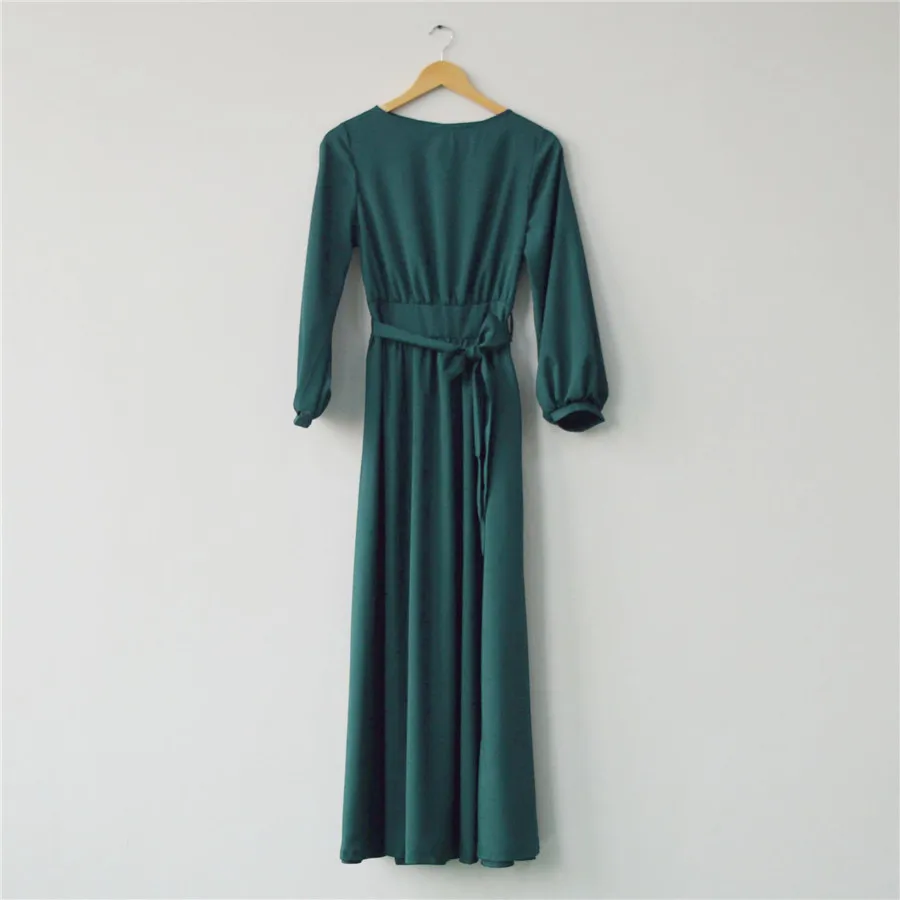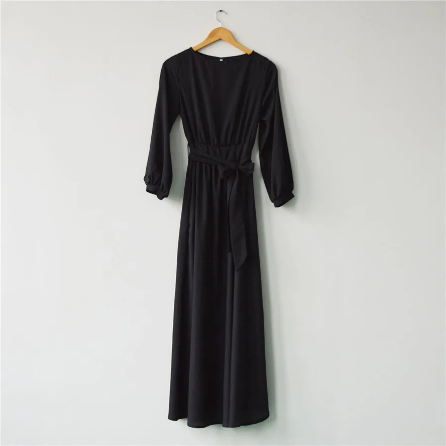 Кружевное лоскутное платье C2333 с глубоким V-образным вырезом и длинным рукавом