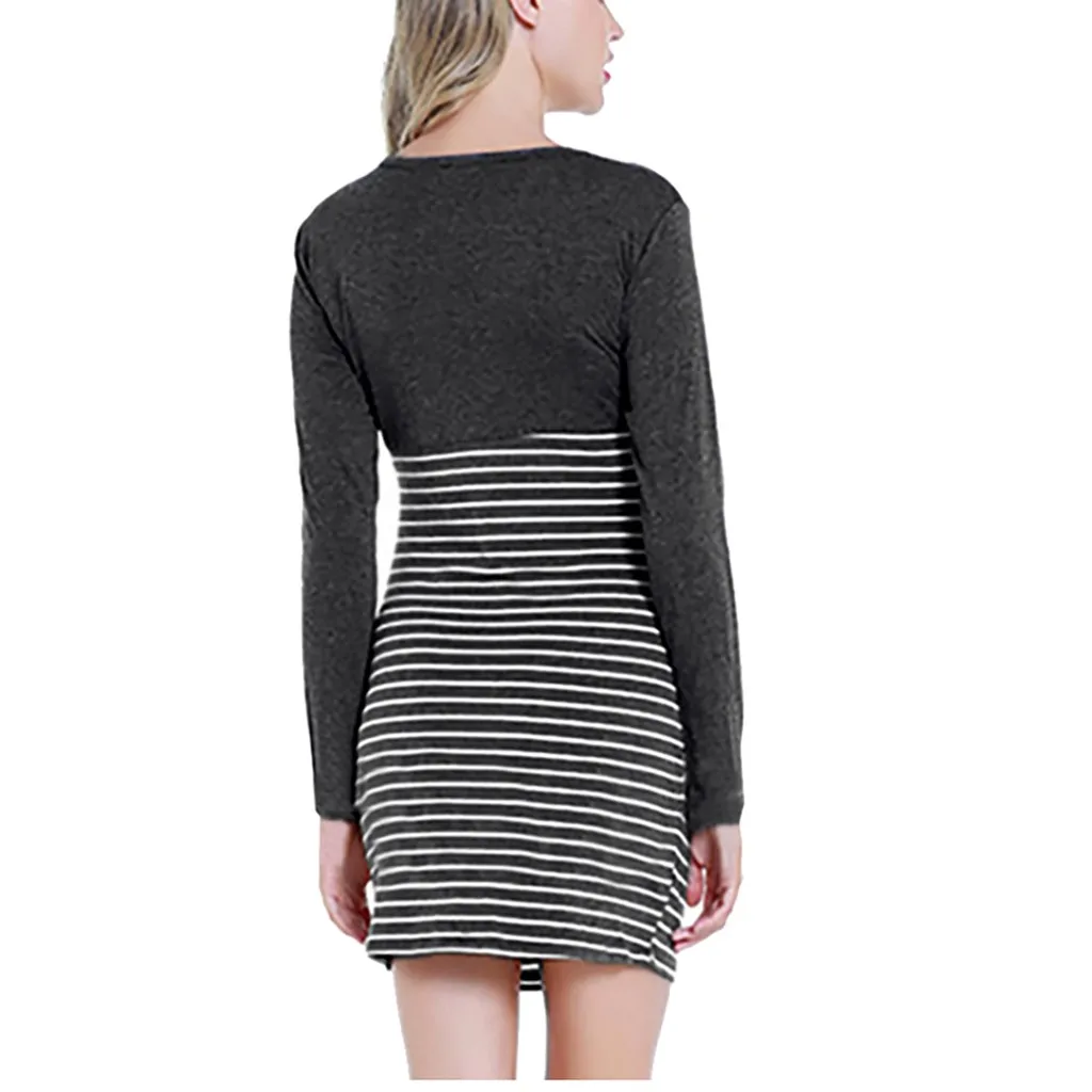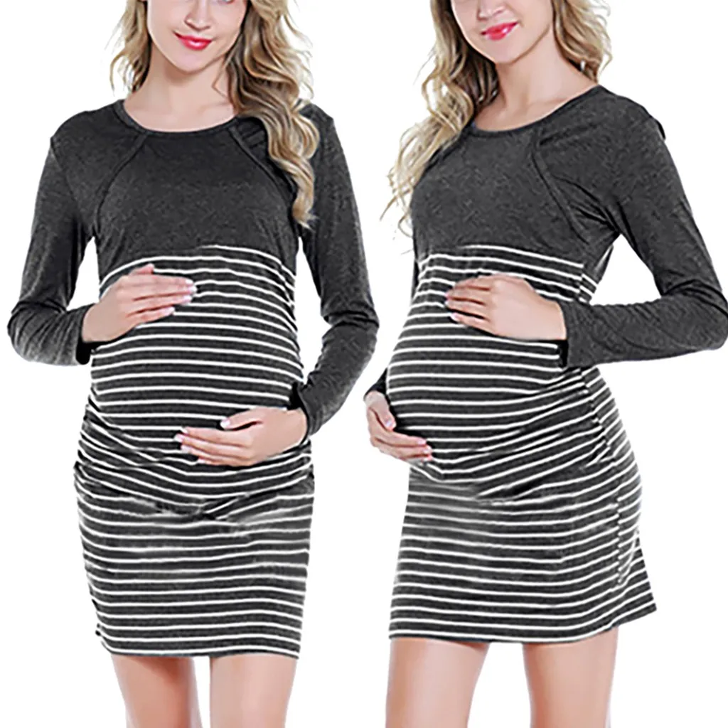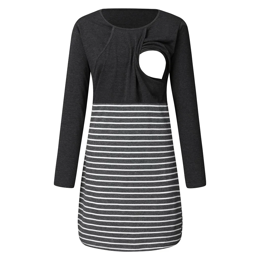 Для женщин для беременных, с длинным рукавом, в полоску, с принтом в виде Слои платье для кормящих матерей Грудное вскармливание