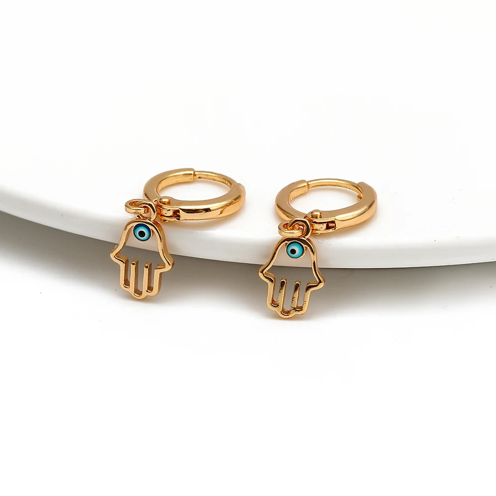 Материал: медь Цвет: Золотой Размер: 25*12 мм Форма: сглаза/рука хамсы Посылка: OPP Bag