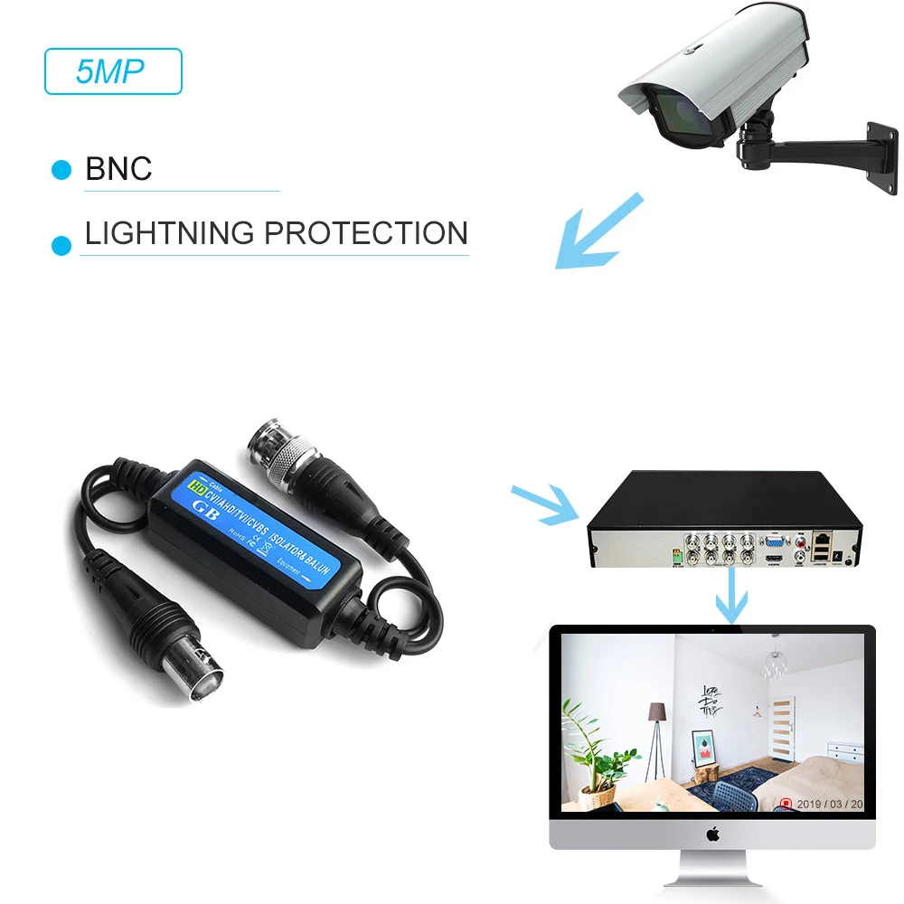 1 шт. HD-TVI/CVI/AHD коаксиальный контур заземления для видео