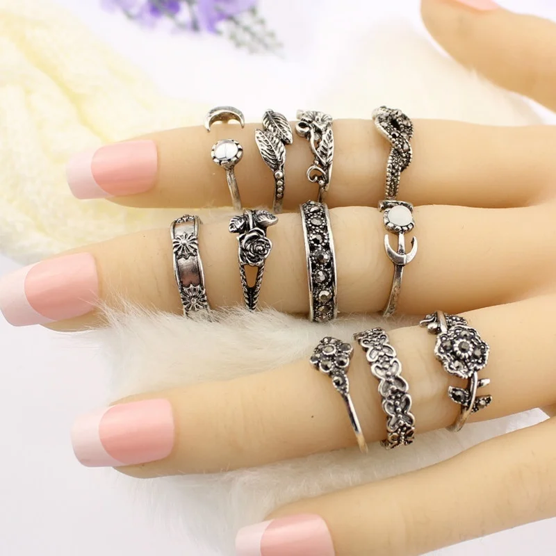 Материал: сплав Цвет: золотой, серебряный Посылка содержит: набор колец 11 шт./компл.
