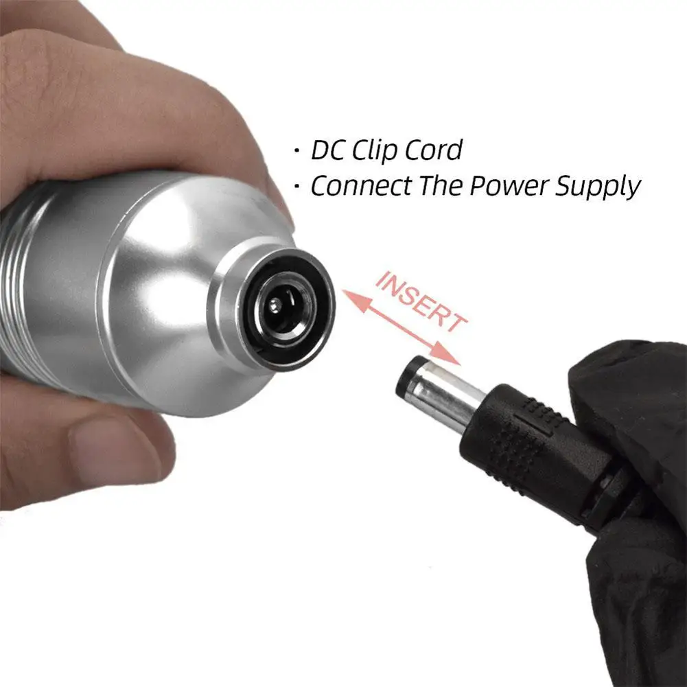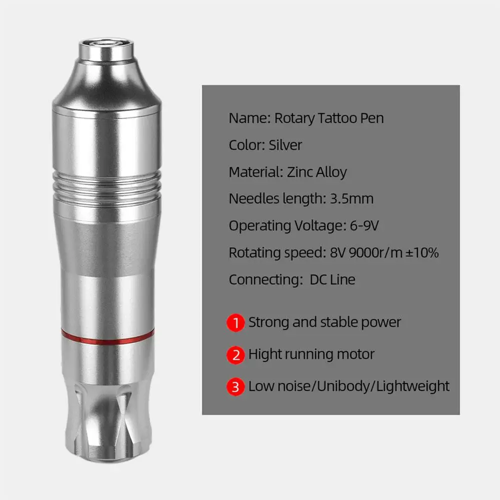 Особенности: корпус из цинкового сплава, умеренный вес, подходит для обычной цельной иглы татуировки, длительное использование без лихорадки, низкий уровень шума, процесс татуировки для улучшения слуха клиента