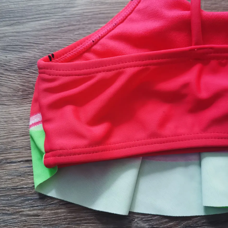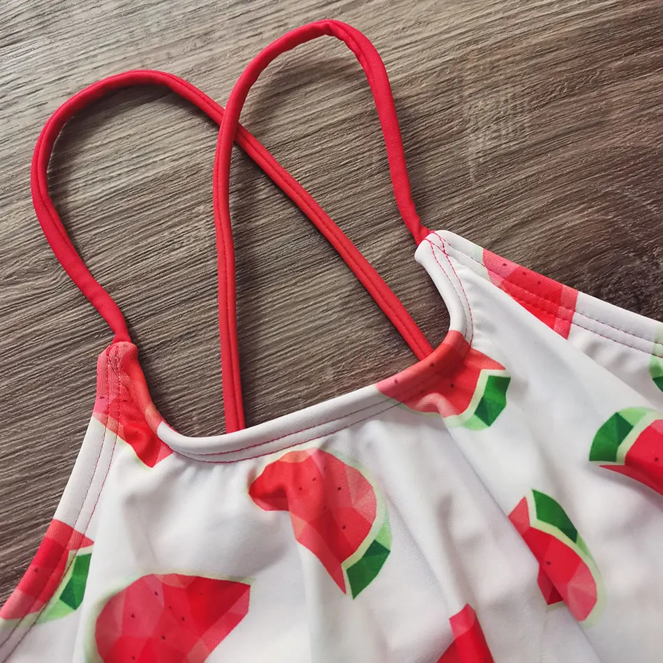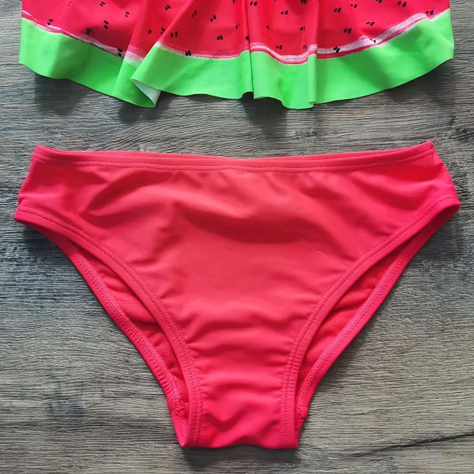Купальник для девочек; Купальник с оборками; Комплект бикини для девочек-подростков; 2 предмета; Детский купальник с принтом арбуза; Купальный костюм для девочек; Пляжная одежда