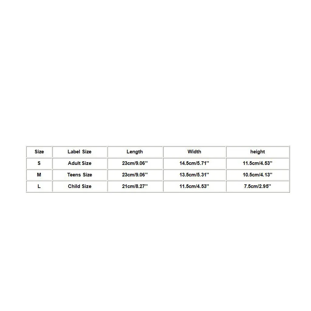 М | Размер для подростков | 23 см/9,06'' | 13,5 см/5,31'' | 10,5 см/4,13'' |