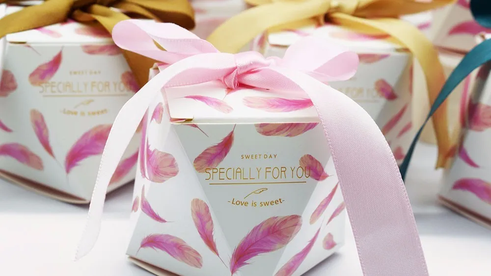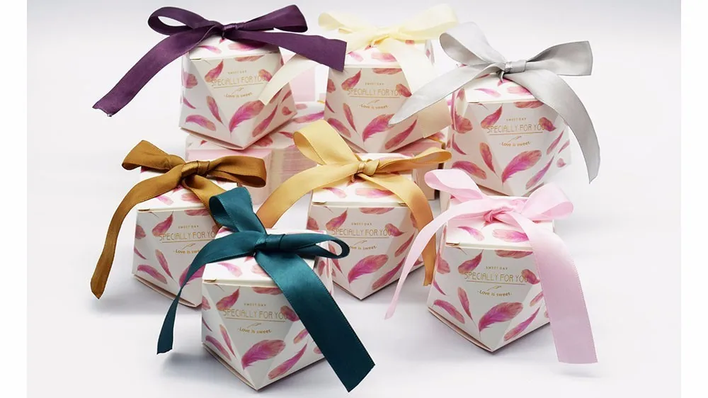 RANO милые украшения картон Подарочная коробка для свадьбы и вечеринки перо узор пользу конфеты коробка с лентой