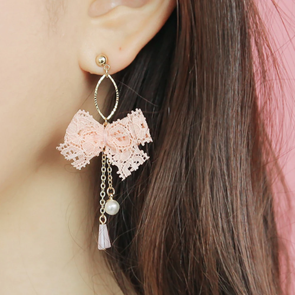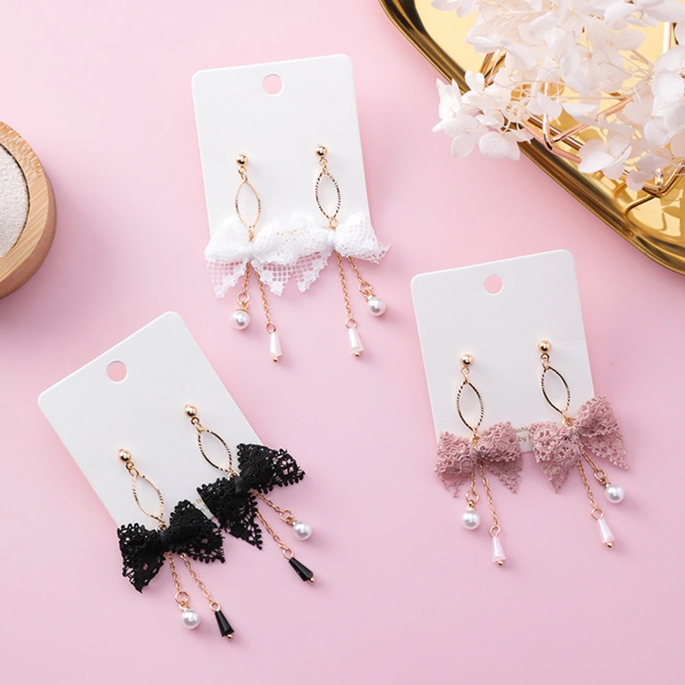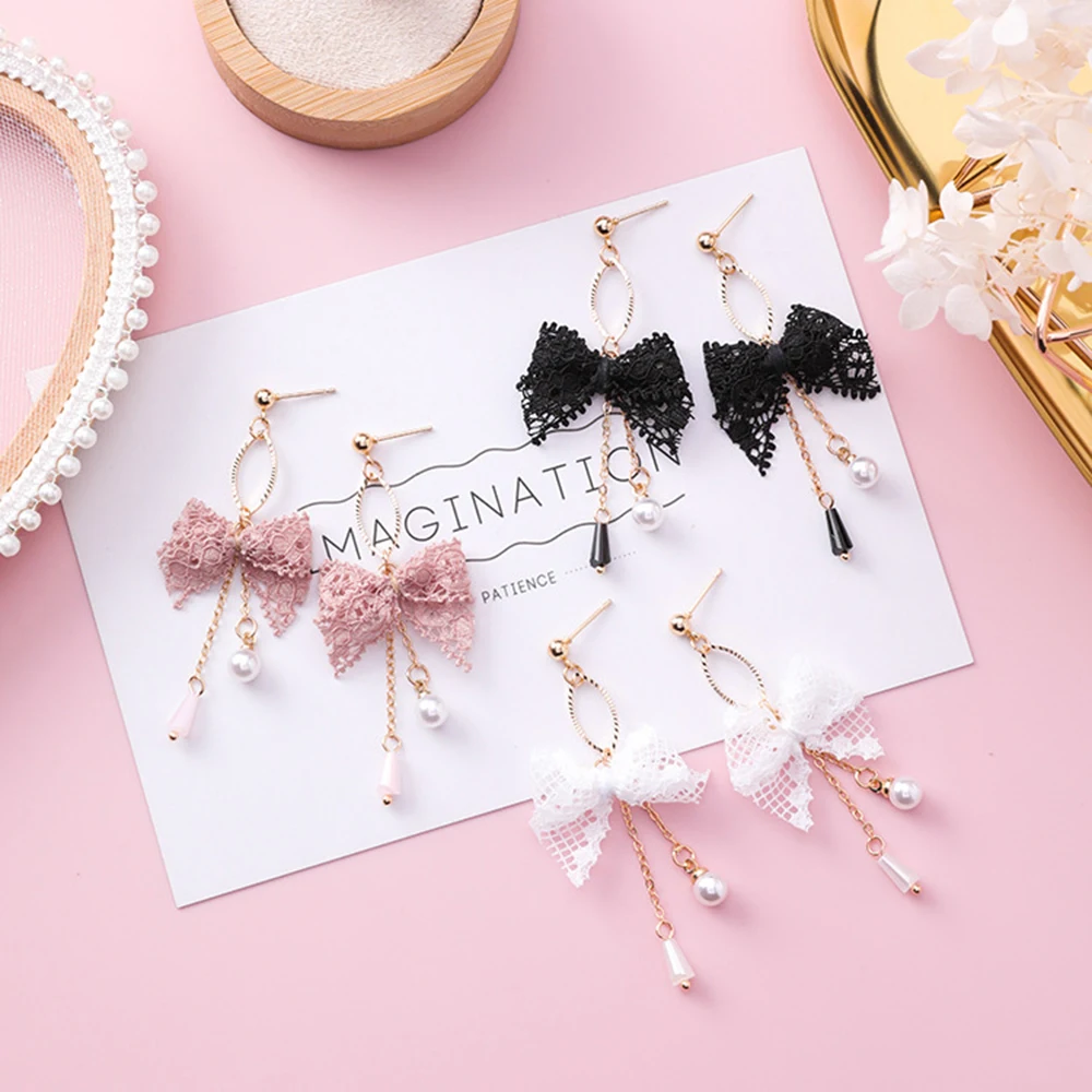 Милые серьги с кружевным бантом и кисточками, модные элегантные длинные висячие серьги ручной работы с жемчугом для женщин, модные дизайнерские подарки