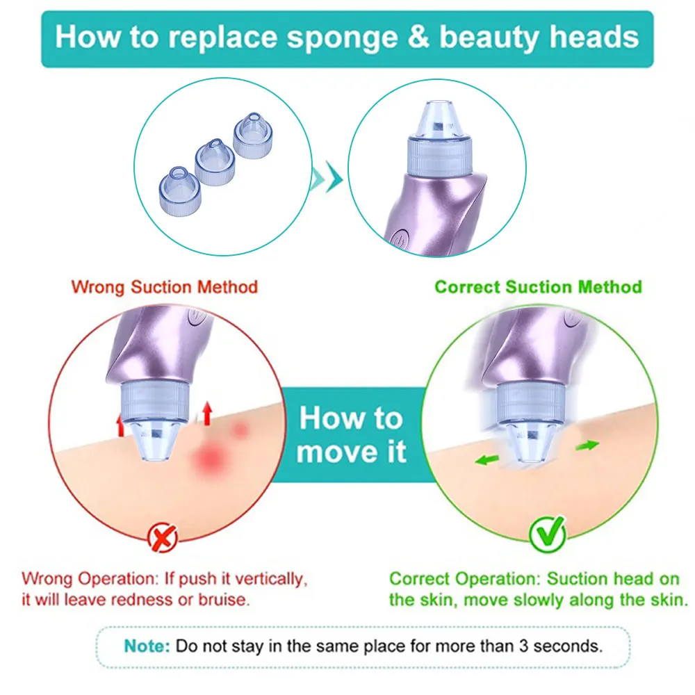 Vacuum function cleans dirty pores through suction and increases blood circulation in the skin