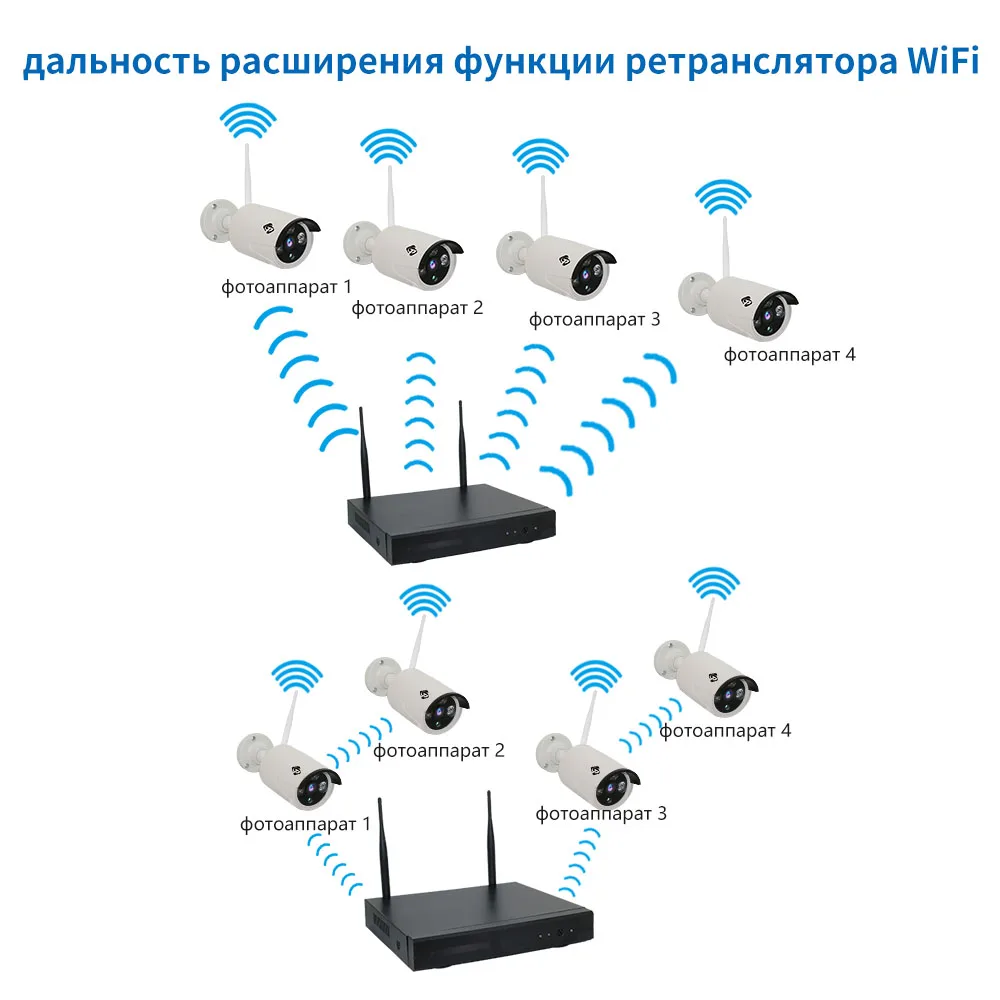 Наши преимущества: 1. Разрешение HD 1080P; 2. Беспроводное соединение Wi-Fi / Lan-кабель между NVR и IP-камерами; 3. Металлический корпус корпуса водонепроницаемый IP-камера может использоваться для внутреннего и наружного применения; 4: канал NVR, поддержка до 8 камер; 5. Подключи и играй, удаленно просматривать Android и iOS системы (смартфон, планшет, планшет, ПК); 6. блок питания для каждой камеры; 7. Светодиодные фонари с ИК-подсветкой: расстояние до ночного видения до 30 м; 8. Обнаружение движения, мгновенное оповещение по электронной почте; 9. NVR обновляется до кодирования H.265 +: экономьте место на жестком диске; 10. Поддержка нескольких языков: английский, русский, французский, испанский и т. Д .; 11. Бесплатные подарки: 1 шт. Усилитель антенны и наклейки. Что в коробке? 1 х 8-канальный H.265 + беспроводной сетевой цифровой видеорегистратор (беспроводной NVR) 4 х цветные CMOS 2.0MP ИК-светодиоды IP-камеры 4 х 12 В 1A адаптер питания для камер безопасности 1 х 12 В 2A Блок питания для NVR 1 х Мышь 1 х Руководство пользователя 1 х 3 м усилитель антенны (подарок) 1 х 1 м Ethernet-кабель (подарок) 1 х предупреждение стикер (подарок) Жесткий диск необходим для записи видео, 1 ТБ Жесткий диск может продолжать запись около 20 дней видео. Когда жесткий диск заполнен, вы можете настроить его на перезапись старого видео или остановку записи. Расширяемая система безопасности камеры 8-канальный NVR Design, поддержка подключения до 8 шт. Камер, вы можете купить IP-камеры для расширения вашей системы видеонаблюдения Возможно, вам понадобятся дополнительные камеры для этой системы видеонаблюдения, щелкните следующую фотографию, чтобы получить ее: IP-камера для системы видеонаблюдения Автоматическое сопряжение, беспроводные соединения между камерами и NVR, без сложных кабелей Правда подключи и играй, простота установки Супер простая установка и настройка. Реальный подключи и играй, не требуя каких-либо профессиональных навыков, вы можете полностью сделать это самостоятельно и создать собственную систему наблюдения. Беспроводная передача до 50 метров (без препятствий) Беспроводная система видеонаблюдения Оснащен светодиодами с ИК-подсветкой, расстояние до ночного видения до 30 метров Система ночного видения Металлический корпус IP66 защищенный от непогоды Камеры безопасности, широко используемые для внутренних и наружных работ Рабочая температура камеры: -25 ~ 50 (- 13 ~ 122) Водонепроницаемая IP-камера 1080P Дружественный интерфейс SW, поддержка нескольких языков Поддерживает английский, русский, французский, турция, италия, испанский, германия, корейский, японский. И т. Д. Легкий доступ через бесплатное мобильное приложение и программное обеспечение для ПК Когда вы выходите на улицу, вам не нужно беспокоиться о безопасности вашей собственности. Используя беспроводную систему видеонаблюдения, вы можете удаленно просматривать живое видео одновременно в любое время и в любом месте с помощью Wi-Fi / 4G на смартфоне / iPad / ПК. Загрузите бесплатное приложение «IP Pro» или «EseeCloud» из Google Play / APP Store, которое легко настроить в считанные секунды. Вид ПК / ноутбука: Windows / MAC Система: CMS Software. Вы также можете просматривать в режиме реального времени с компьютера через IE. Обнаружение движения и оповещение по электронной почте При настройке области обнаружения нескольких движений вам будет отправлено электронное оповещение, как только камера