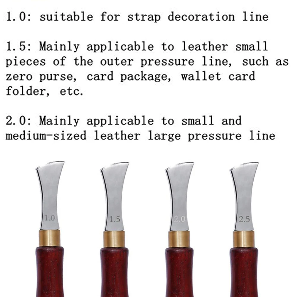 5.1mm is suitable for the strap decoration line, 1.5mm is suitable for the outer decorative line of the small part of the card decoration line, 2.0mm is suitable for the outer skin pressing decoration line of the slightly larger leather goods, 2.5mm is suitable for the large package with the edge line width slightly thicker .