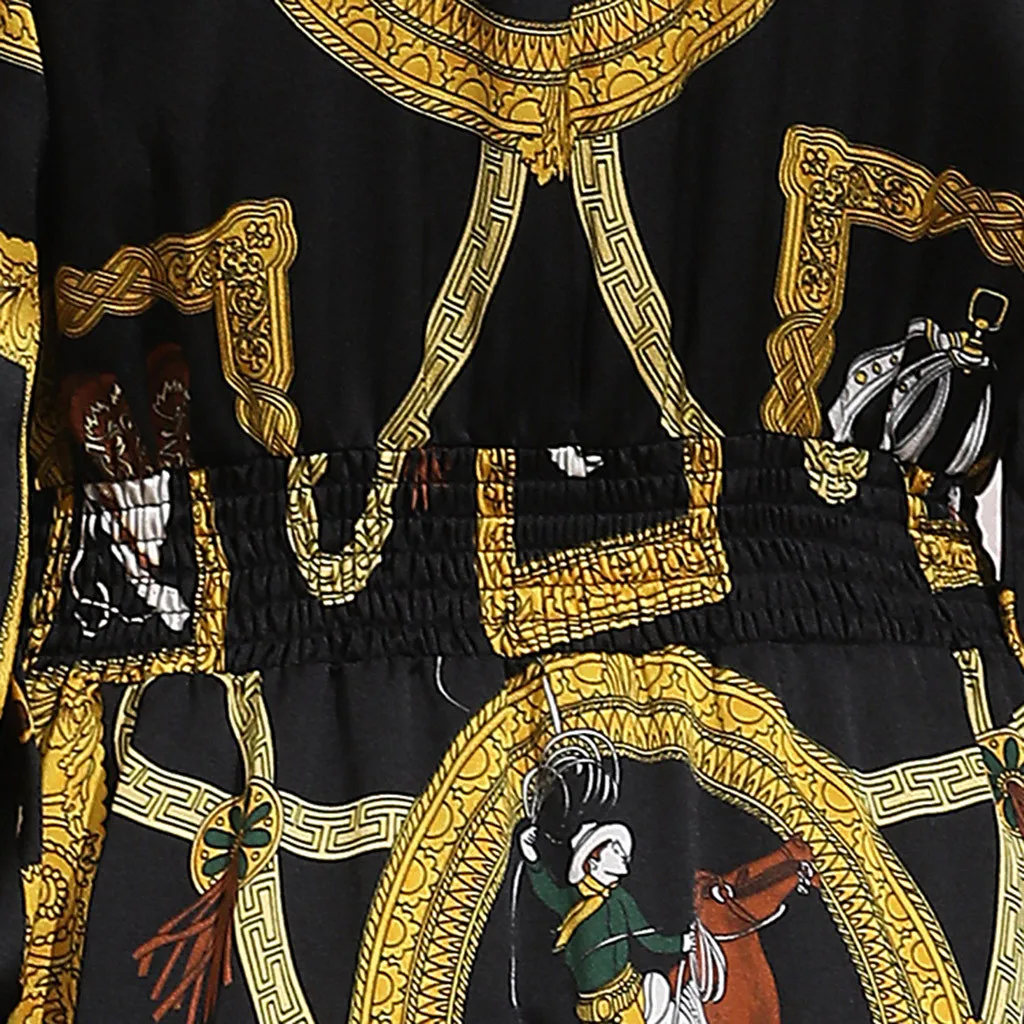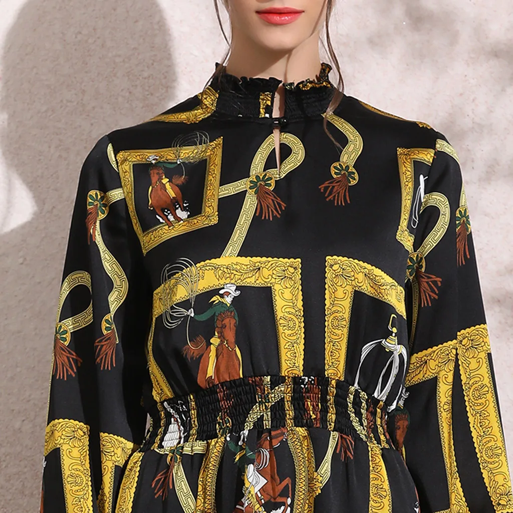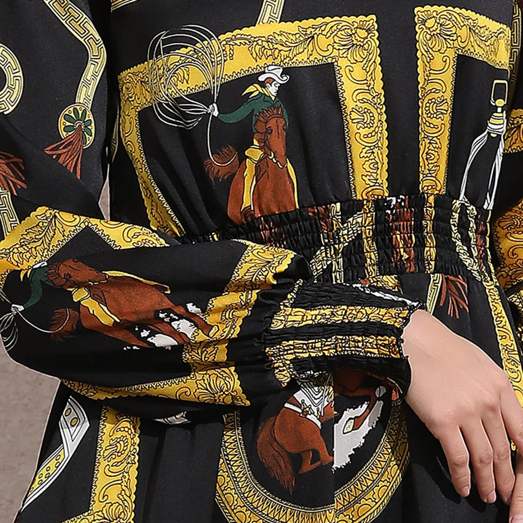 long abaya dress Casual Muslim dress women Fashion Muslim New Simple Retro Print Slim Elastic Waist Silk Dress Long Dress T417