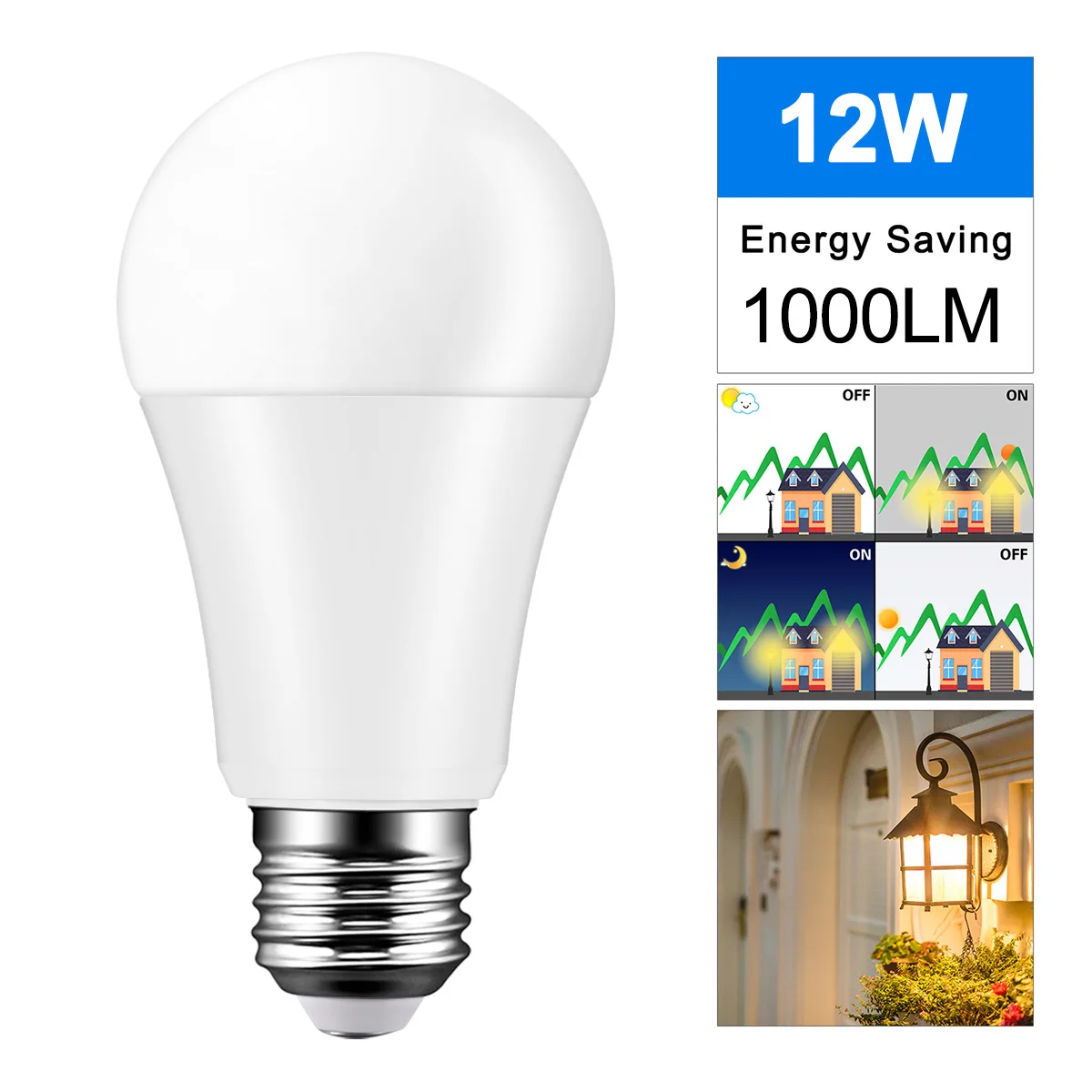 Цоколь E27, Встроенный чувствительный светильник-датчик, автоматически включается в сумерках и автоматически выключается на рассвете. Нет необходимости включать/выключать его самостоятельно, что приносит вам удобство.