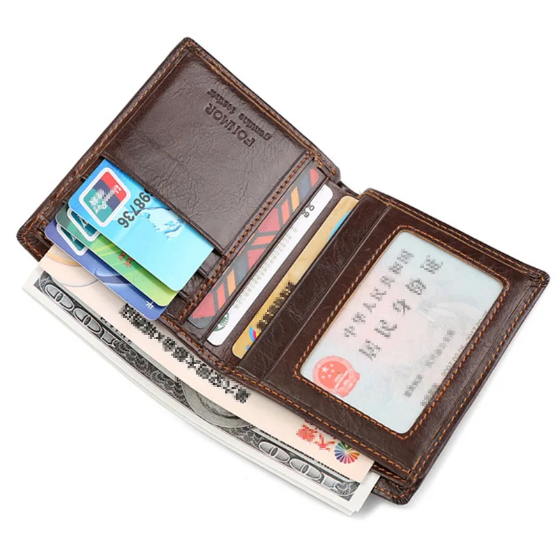 Мужской кошелек из натуральной кожи с отделением для кредитных карт, деловой двойной короткий кошелек с передним карманом для путешествий