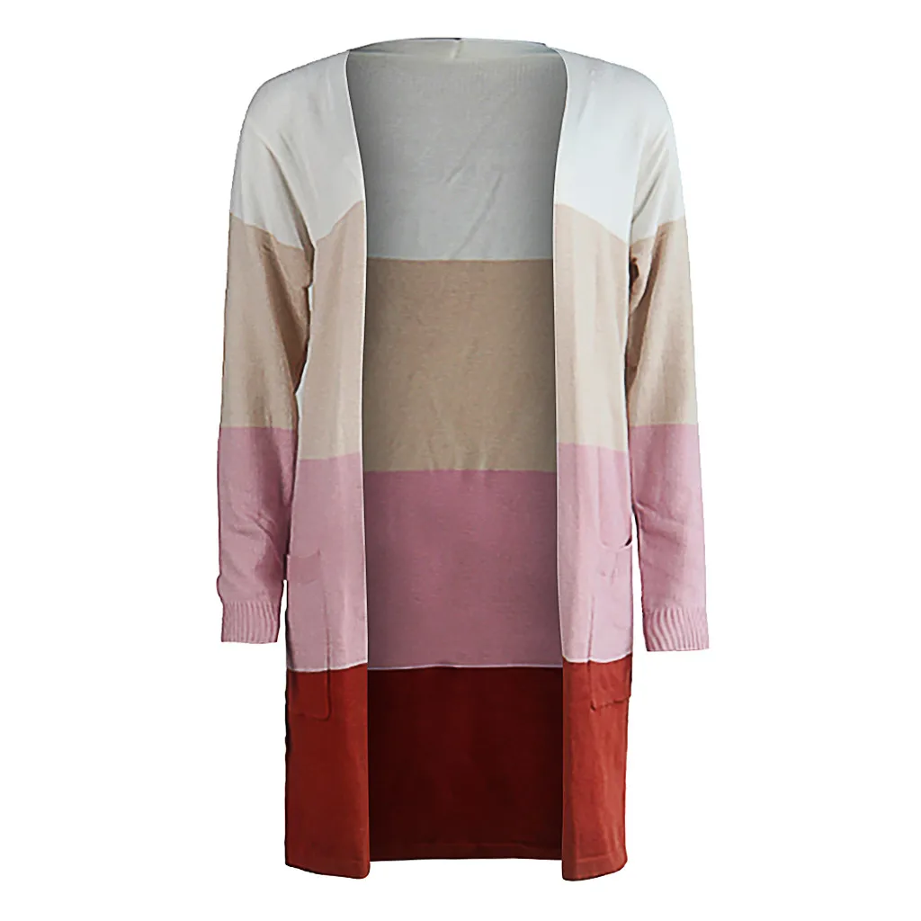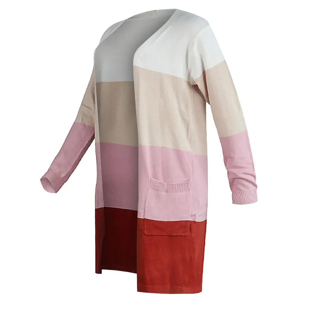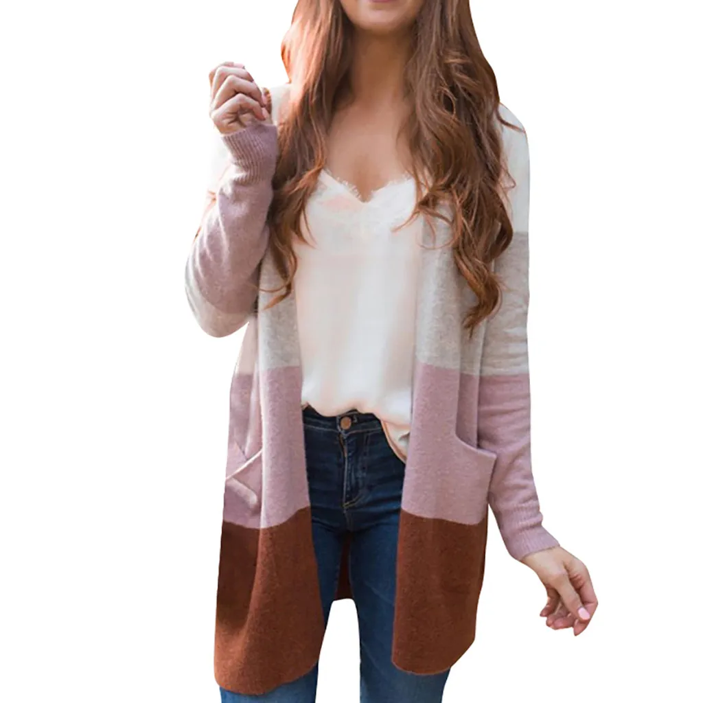 Women Casual Long Sleeve Patchwork Pocket Cardigan Tops Blouse Coat
