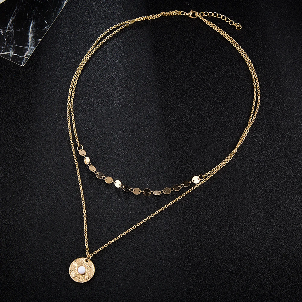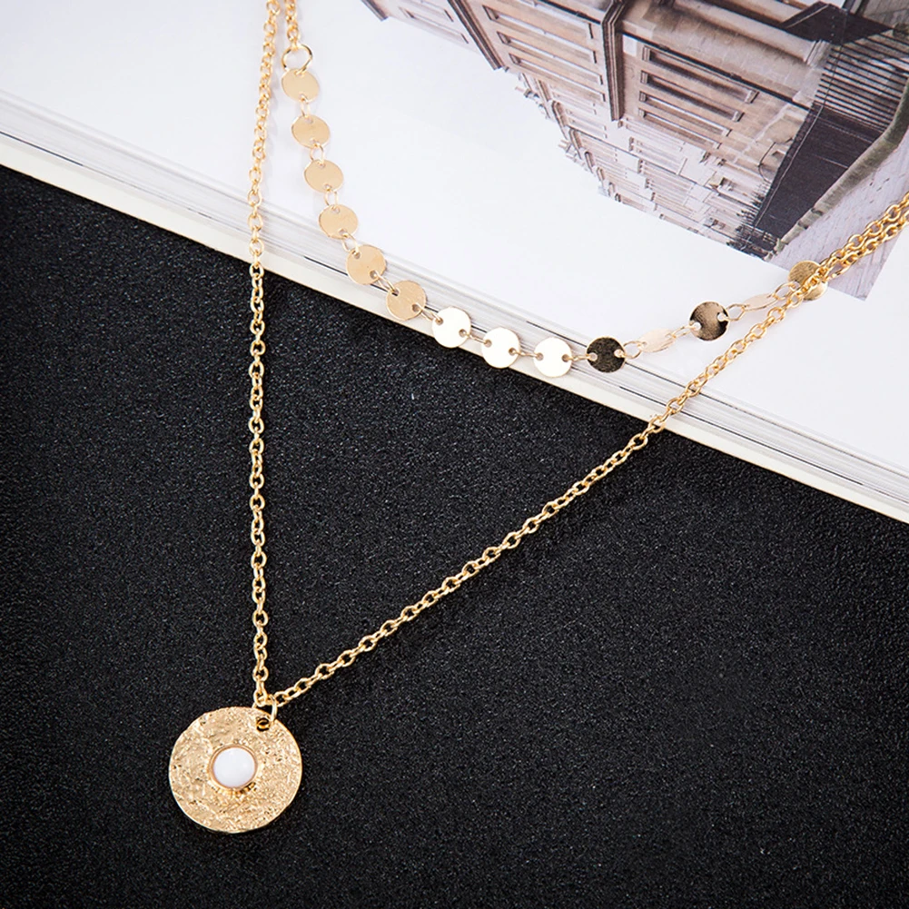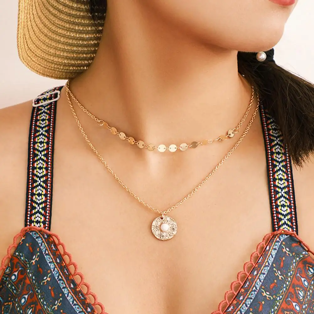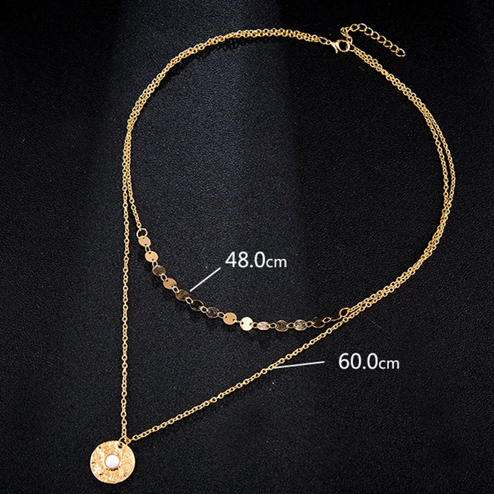 Богемное женское Двухслойное колье с блестками, круглая подвеска, ожерелье, подарок
