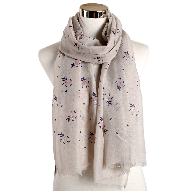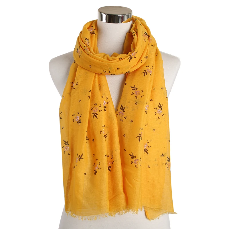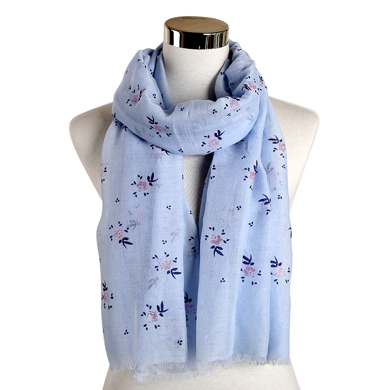FOXMOTHER New Fashion Blue Yellow Pink Floral Glitter Scarf Shawl Wrap Echarpe Smaller Flower Scarf Women Accesorios Mujer