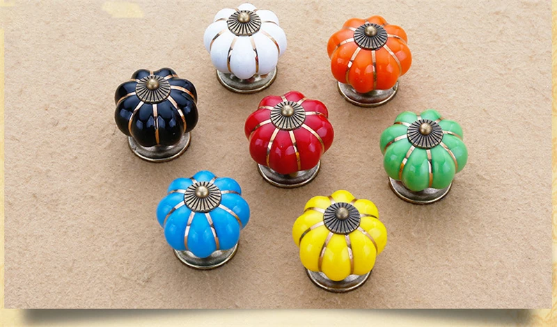 LBA семь цветов с одним отверстием ручка в виде тыквы детская мебель для комнаты цинковый сплав выдвижной ящик мультяшная ручка садовая керамическая ручка