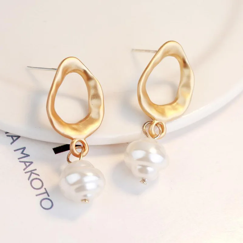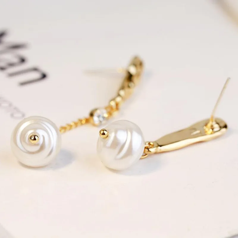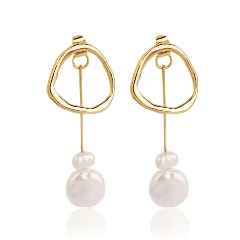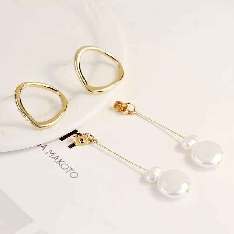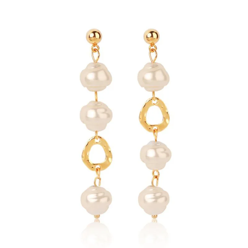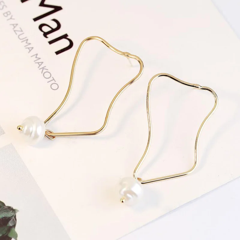 Инс Харадзюку стиль свежий темперамент серьги из металлического сплава геометрические длинные жемчужные серьги-гвоздики неправильное женское украшение простые темпераментные модные серьги