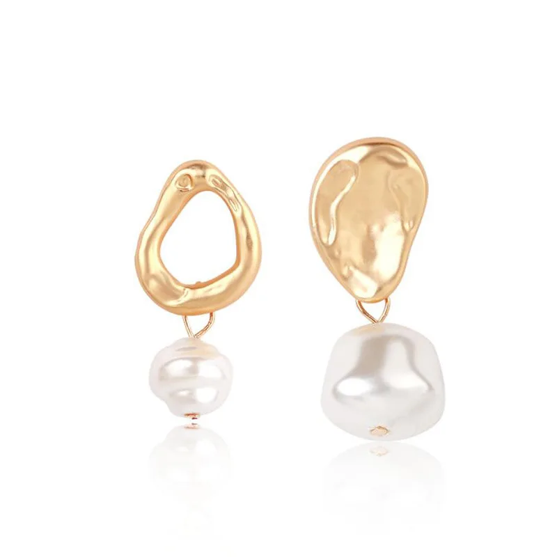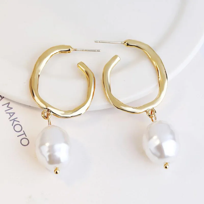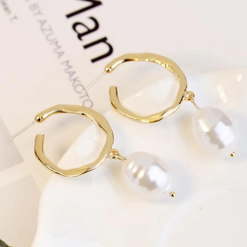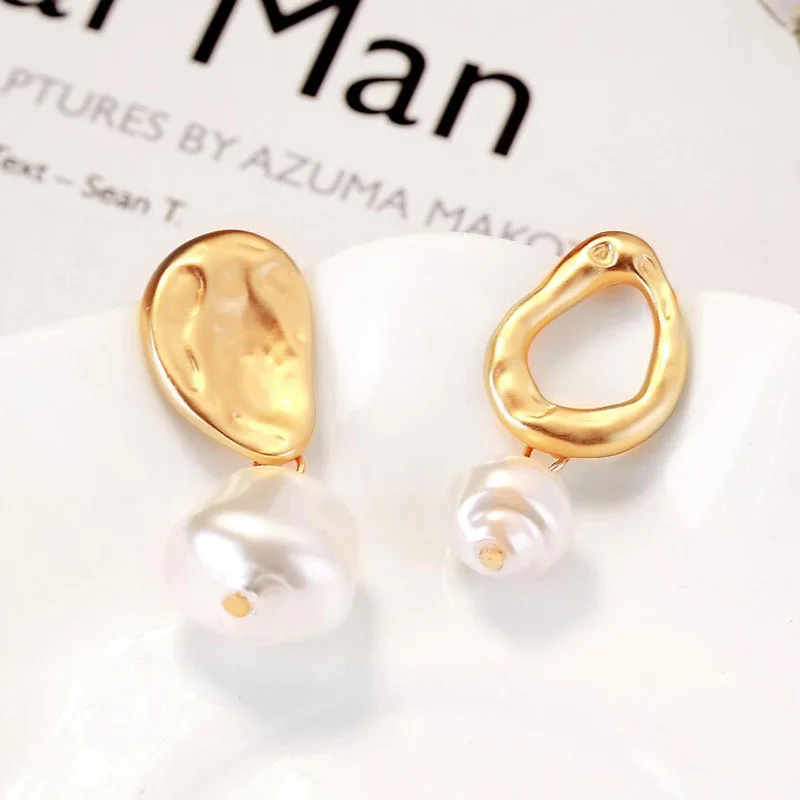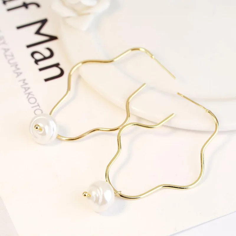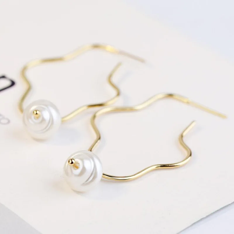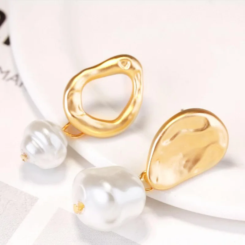 Инс Харадзюку стиль свежий темперамент серьги из металлического сплава геометрические длинные жемчужные серьги-гвоздики неправильное женское украшение простые темпераментные модные серьги
