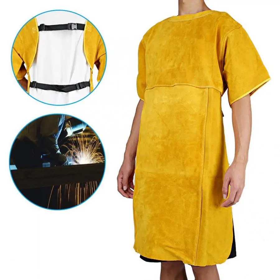 Корова спилок огнеупорный сварочный фартук куртка с открытой спиной золотой