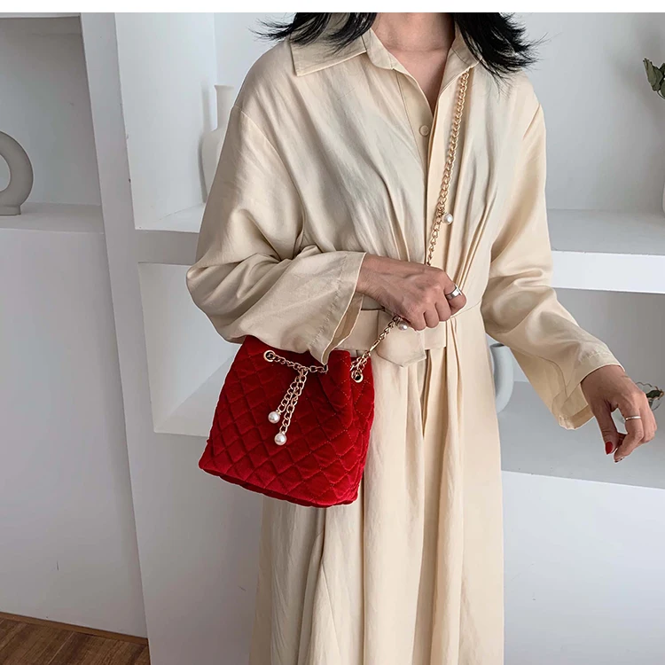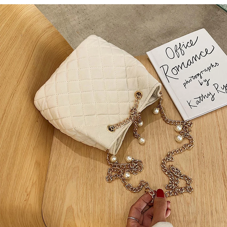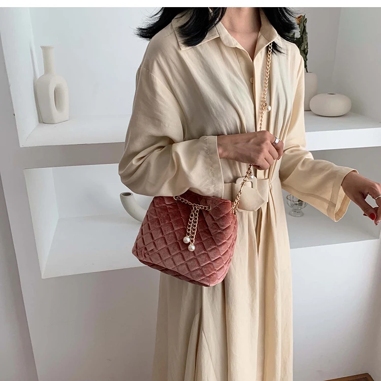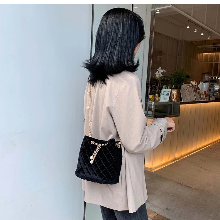 Название: Женская клетчатая сумка-мешокМодные новые высококачественные бархатные женские дизайнерские сумки с жемчужной цепочкой, сумки через плечо