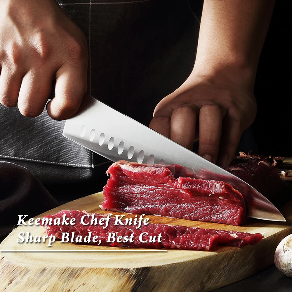 KEEMAKE Профессиональный 8,5 "шеф-повар Ножи Пособия по немецкому языку 1.4116 Сталь лезвие Кухня ножи с палец защита рук ABS белой ручкой шеф-повара Ножи
