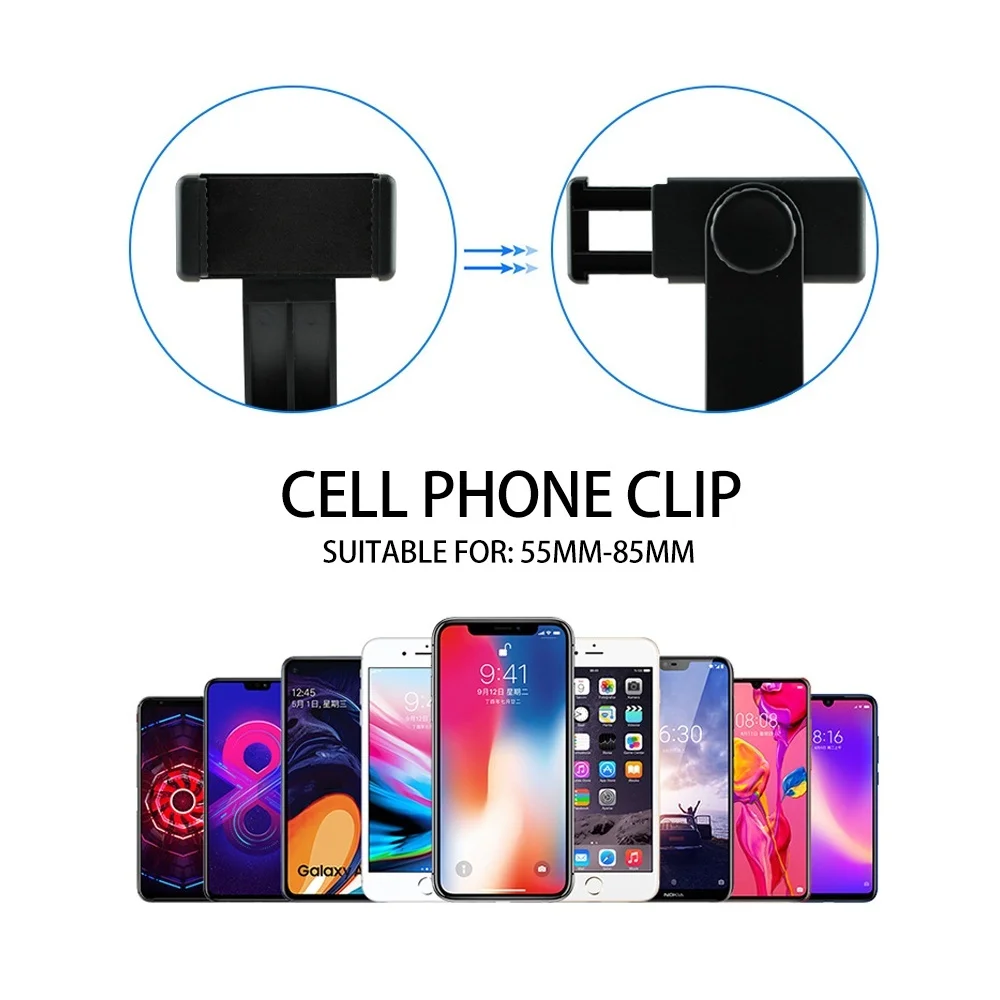A hot shoe adapter is compatible with most DSLR cameras and a smart phone holder for most smartphones (iPhone 8 plus/8/X/7/6, Samsung Galaxy S9/S8, Huawei, etc.).