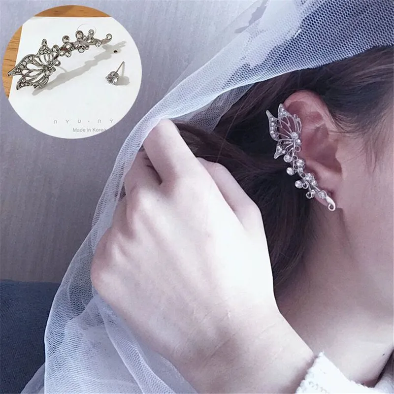 Женские серьги-гвоздики с блестящей бабочкой, стразы, элегантные серьги в Корейском стиле, 2019