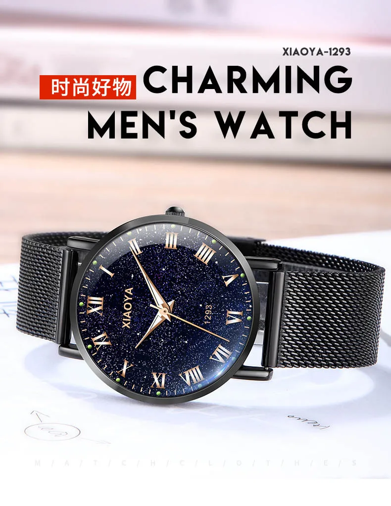 Водонепроницаемые спортивные часы для мужчин, модные ультратонкие кварцевые часы в римском стиле с циферблатом звездного неба, новинка, relogio masculino, военные часы