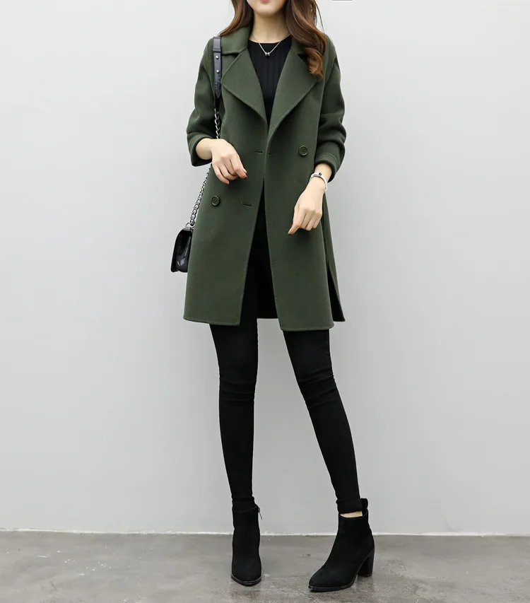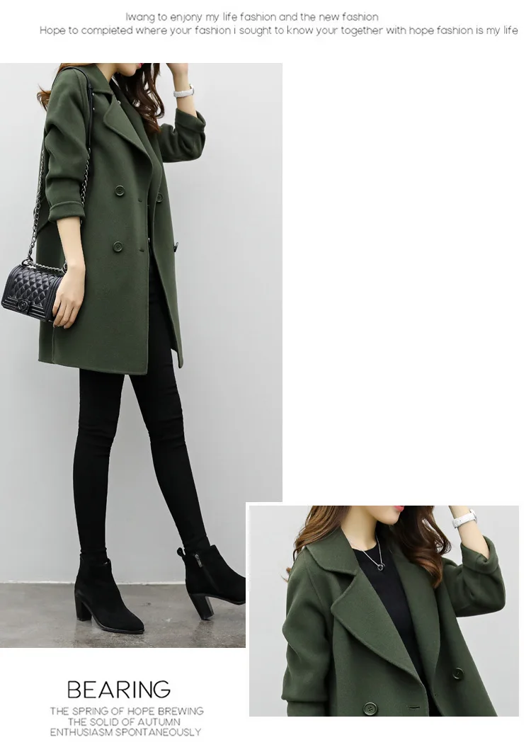 Женское зимнее шерстяное пальто с высоким воротом и рукавом летучая мышь