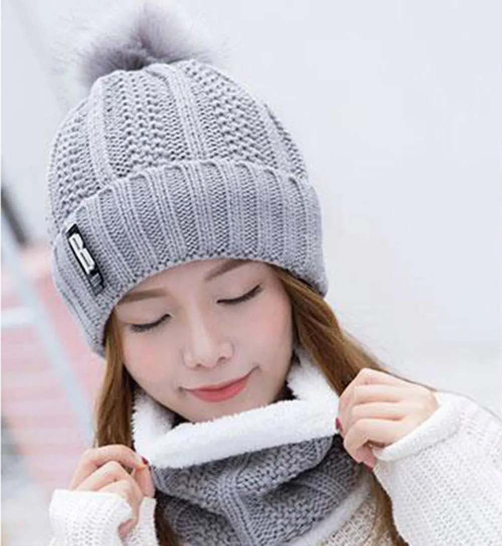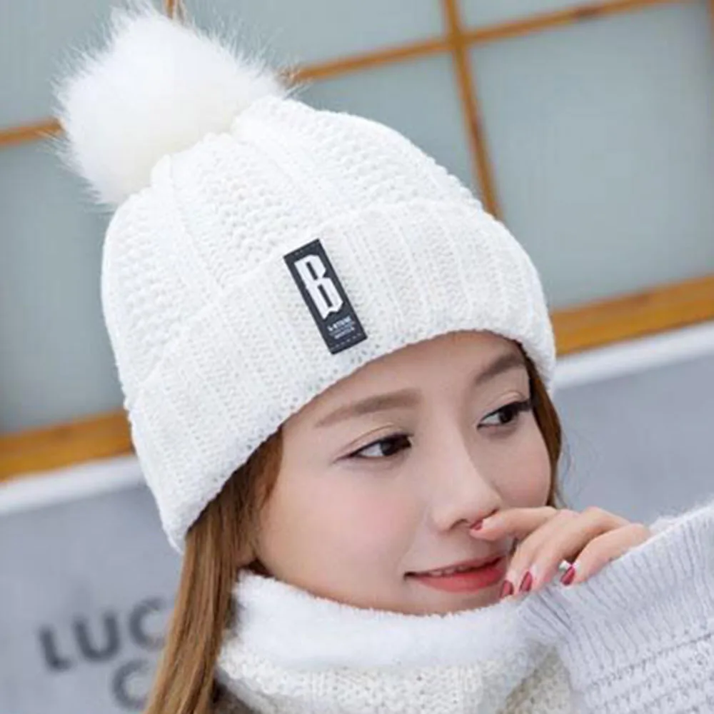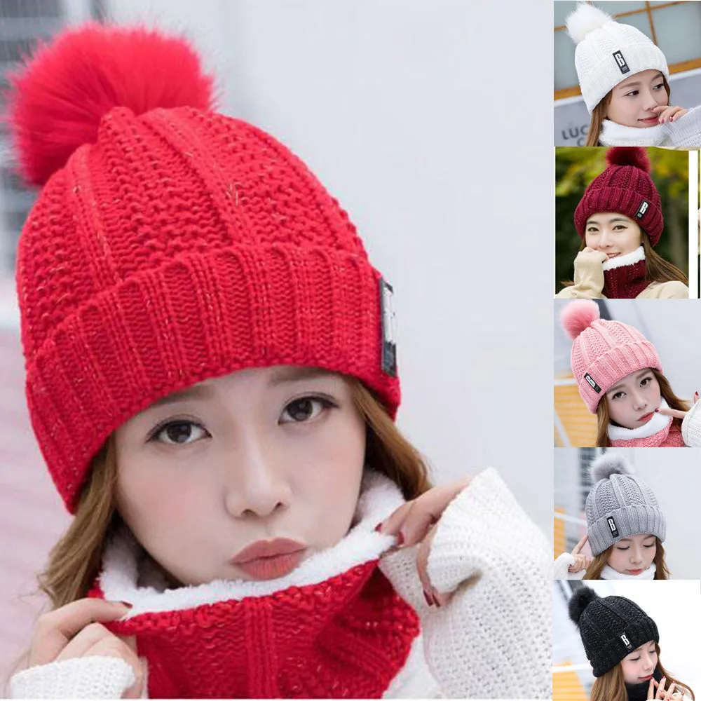 2 шт Женская шапка шарф Набор помпон czapka i komin tricotin шапка снуд дочка зимняя вязаная шапка бархатная Толстая теплая шапка-шарф # E