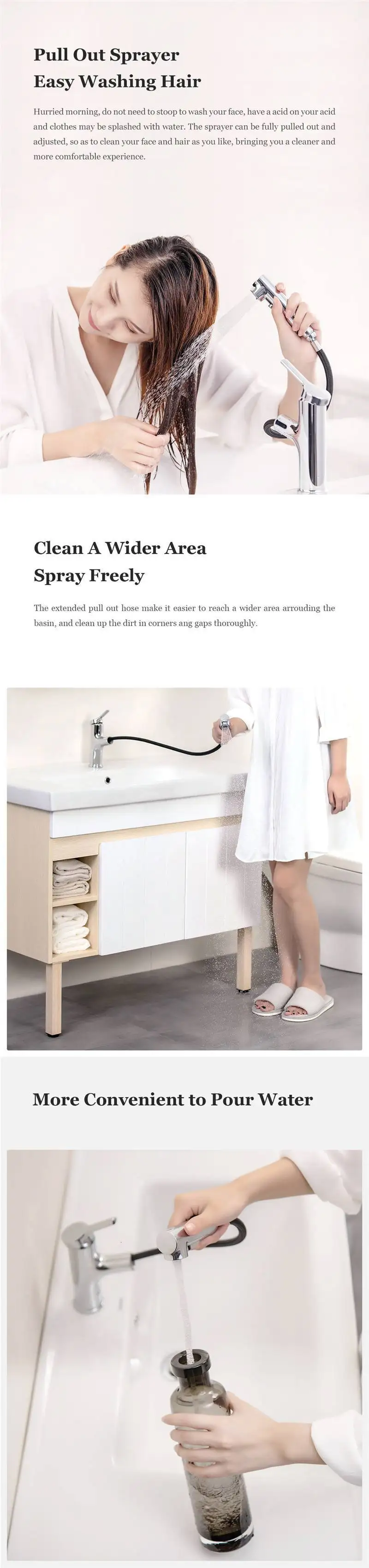 Поспешное утро, не нужно опускаться, чтобы вымыть лицо, есть кислота на одежде youracidand, может быть брызжена водой. Распылитель может быть полностью вытянут и отрегулирован, чтобы очистить лицо и волосы, как вам нравится, что обеспечивает вам очиститель и более удобный опыт.