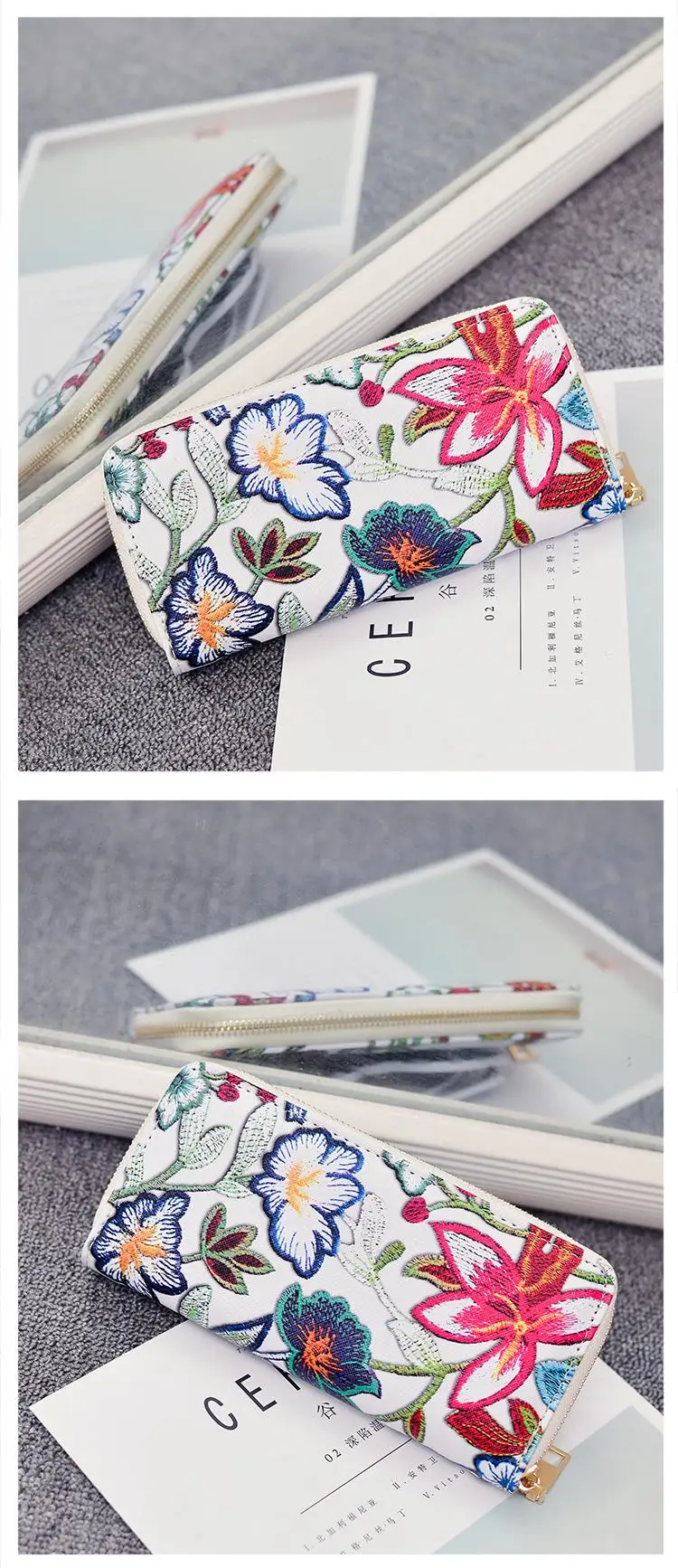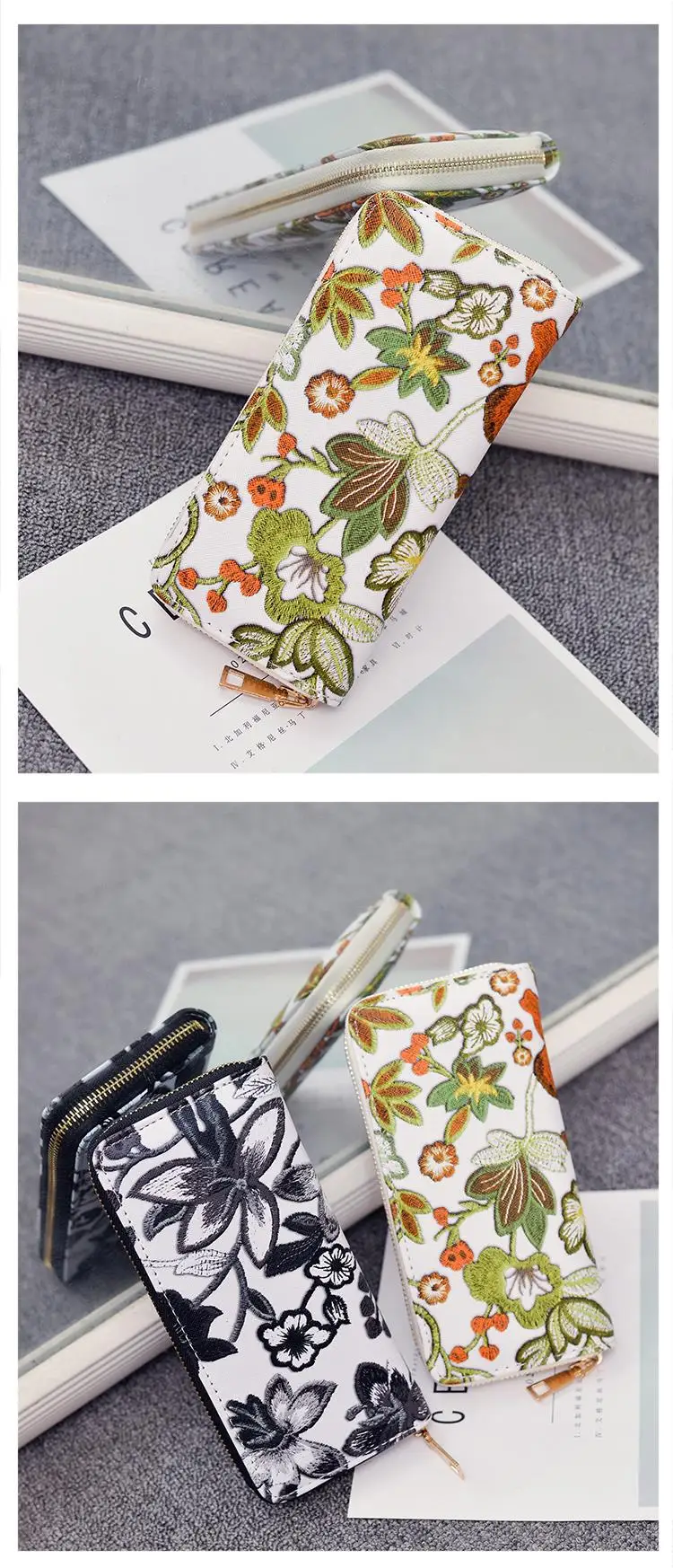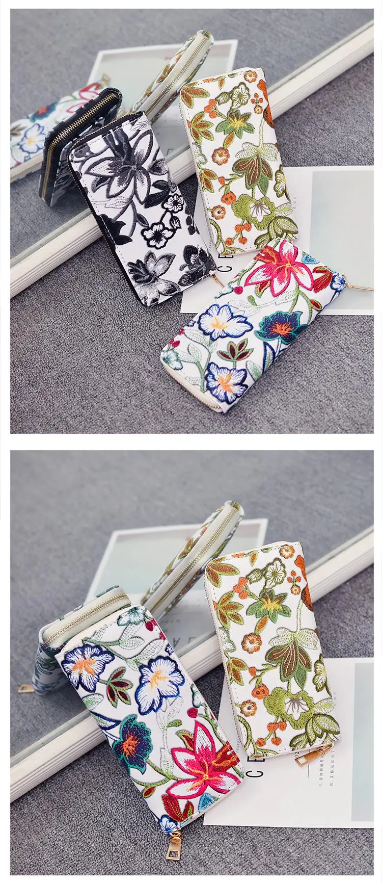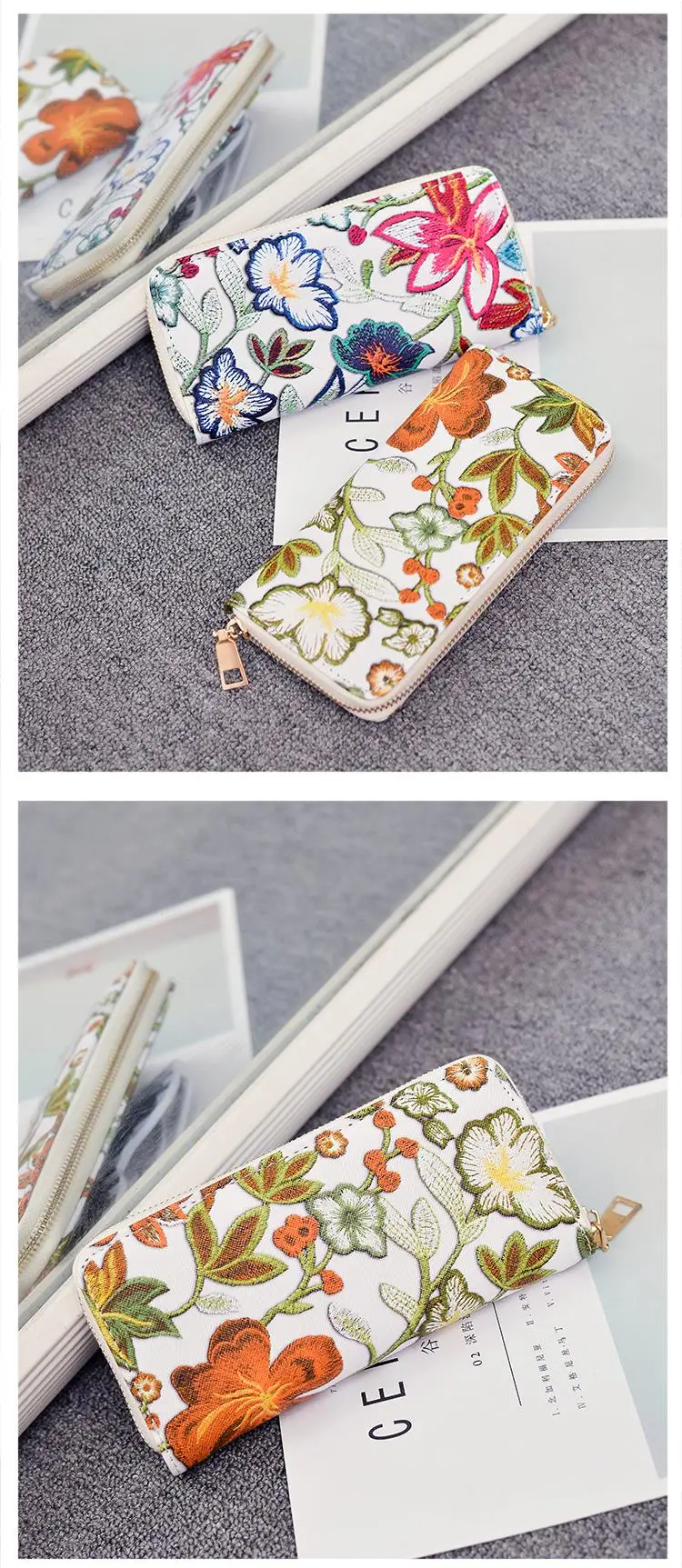 Мода акварель цветок печати длинный кошелек для женщин из искусственной кожи с