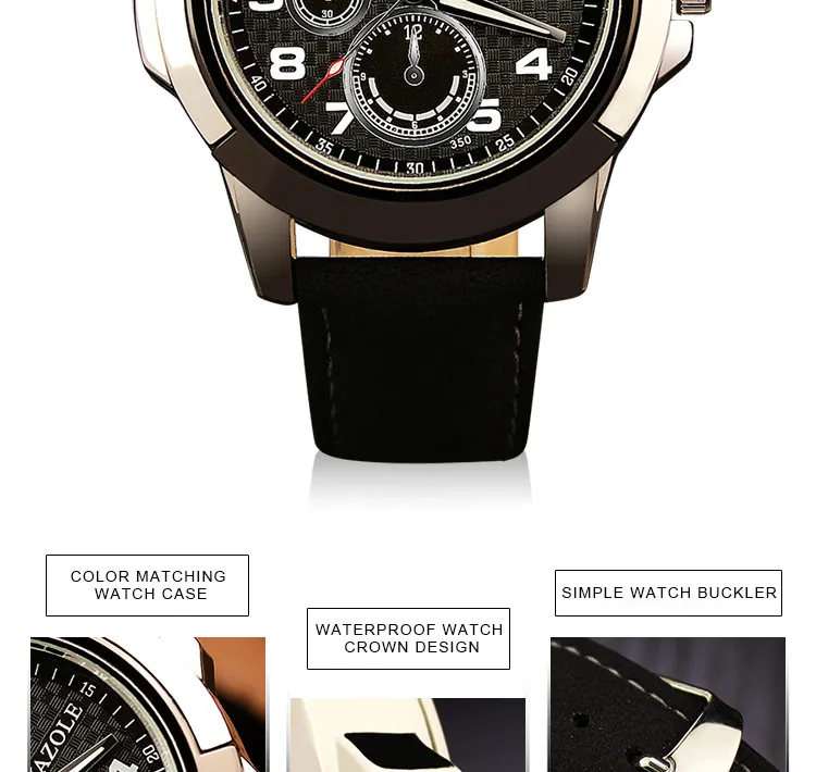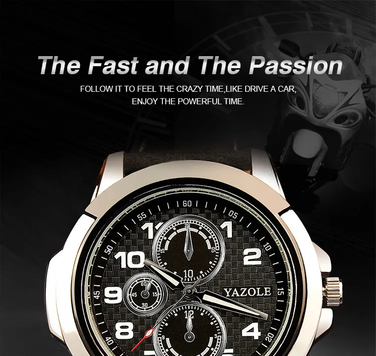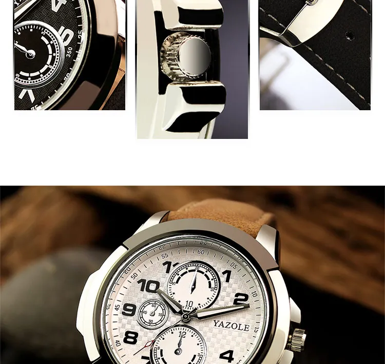 Модные мужские часы с тремя глазами 2019 от бренда YAZOLE светящиеся спортивные повседневные наручные часы Мужские часы с кожаным ремешком кварцевые часы