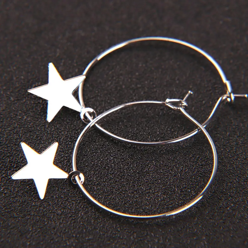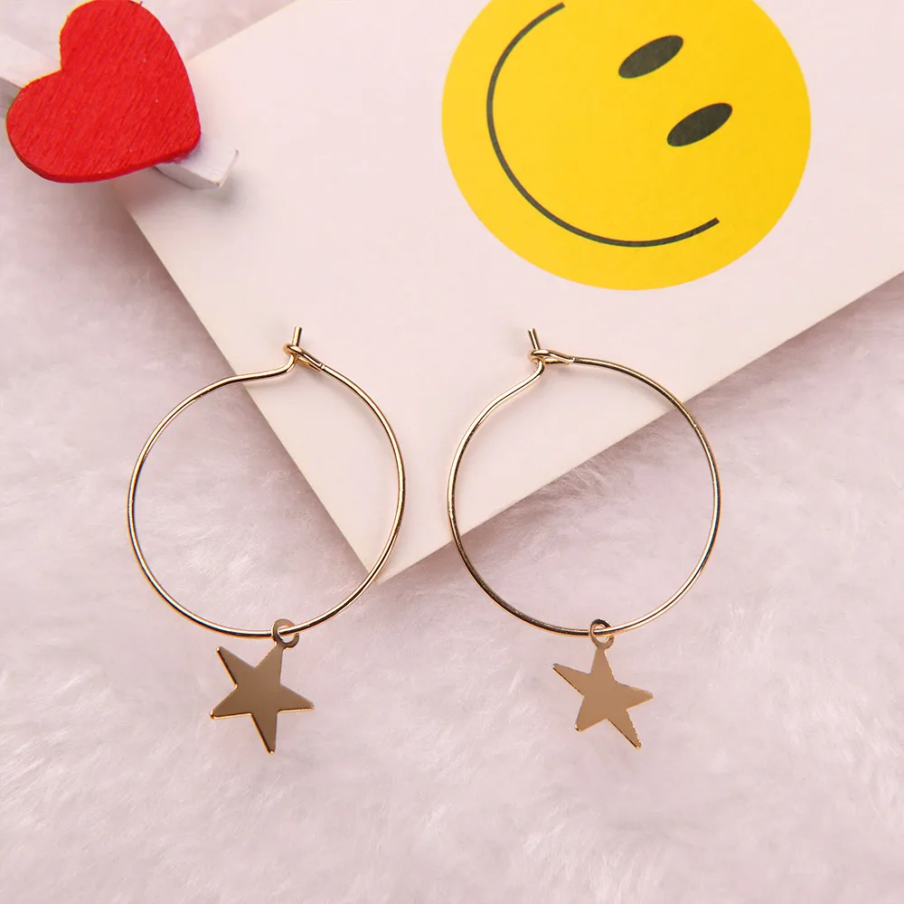 Тип серьги: серьги-капли Материал: металл Пол: Для женщин Стиль: Мода Форма \ узор: звезда Тип Металлов: цинковый сплав Размеры: 2,6 см В комплект входит: 1 пара женских серег