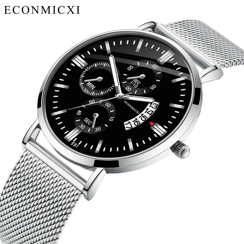 Мужские модные кварцевые часы металлический ремешок многофункциональные