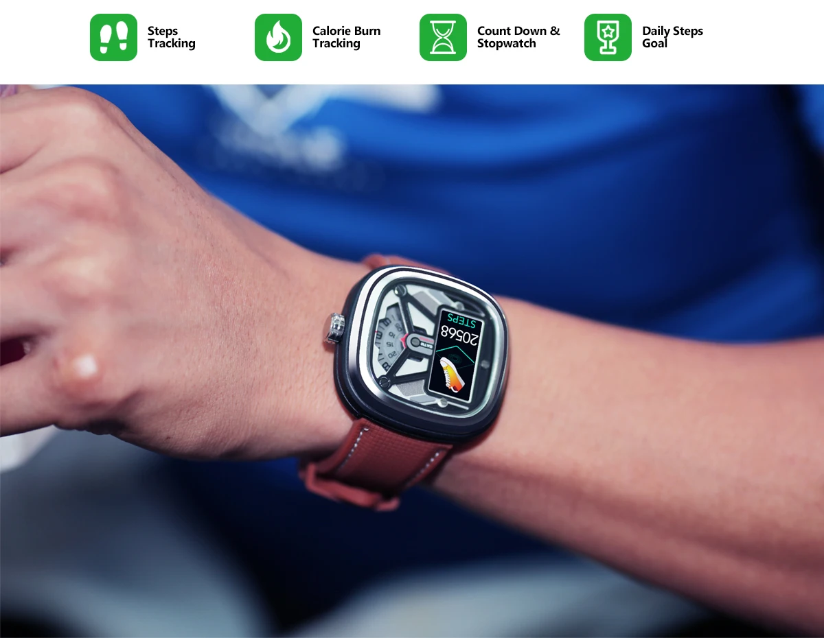 Скрытый цветной дисплей IPS: экран четко виден, что может скрываться в спящем режиме, что улучшает ощущение текстуры часов.