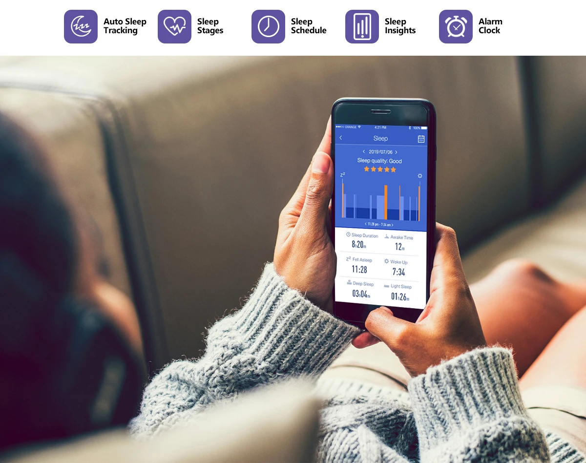 Каждое утро гибрид 2 предоставляет обновления для вашего ночного сна (светильник и глубокий сон плюс перерывы) в приложении H Band. Браслет с интеллектуальным будильником оснащен бесшумной вибрационной сигнализацией, которая может обеспечить оптимальное время в режиме сна, что поможет выйти на день до самого лучшего начала.