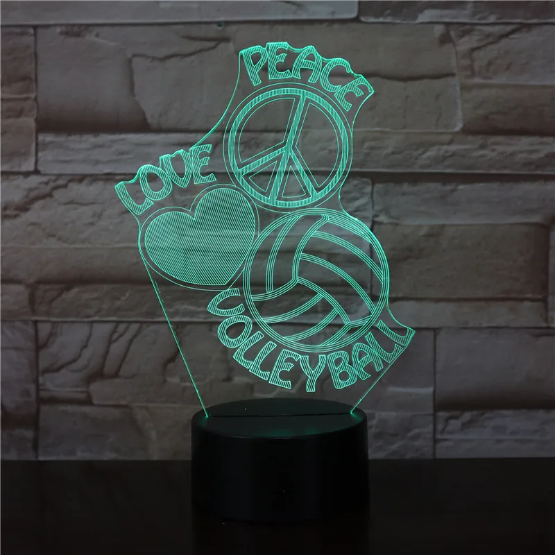 7 цветов Изменение Usb 3D Led Loves Peace ночной Светильник Декор подарок градиенты волейбольная настольная лампа Дети Спальня сон светодиодный светильник