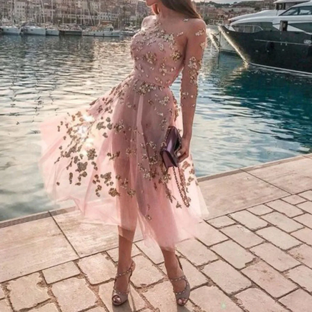 1. Особенности: женское платье, модное, без бретелек, цветочный принт, с блестками, с длинным рукавом, вечерние платья.