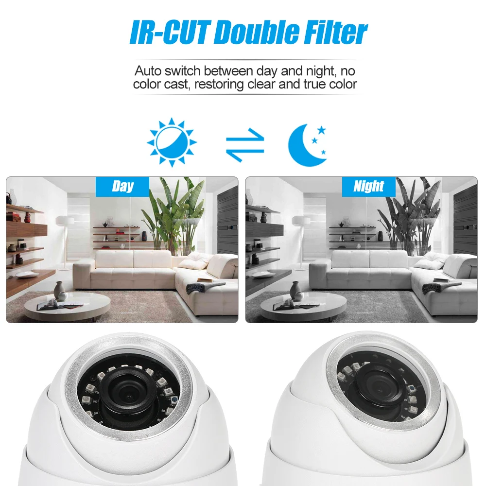 1/3 "CMOS Цвет, 1080P с высоким разрешением, 18 шт. инфракрасных ламп, функция ночного видения, камера видеонаблюдения практична для использования в течение всего срока службы. Цветовая система телевизора доступна для NTSC или PAL, вы можете выбрать одну сигнальную систему, подходящую для вашей страны.