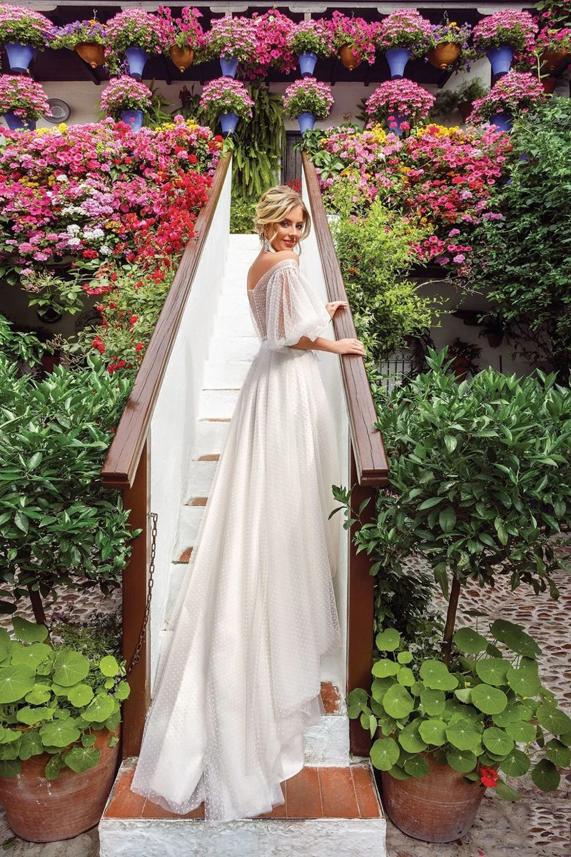 Женское кружевное свадебное платье элегантное романтичное с длинными рукавами и