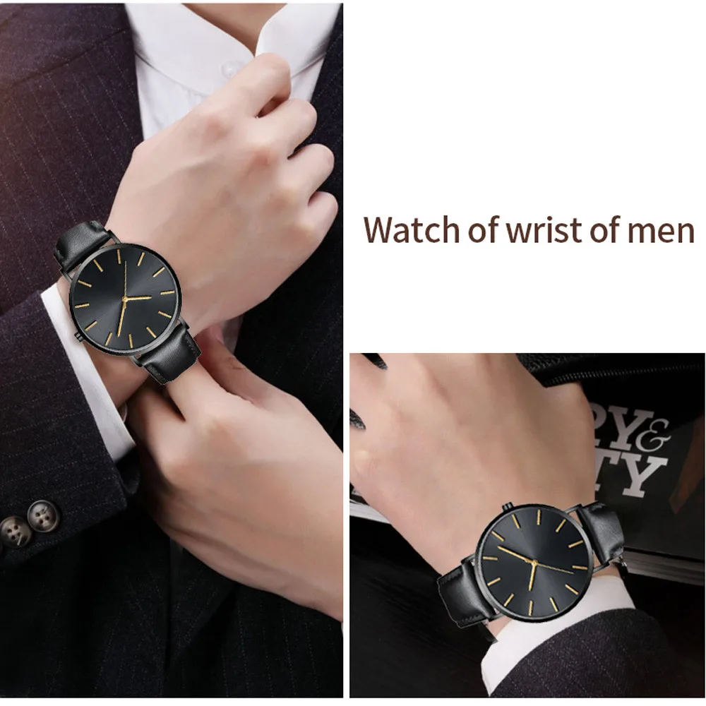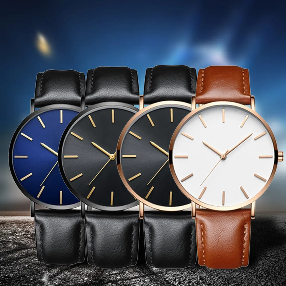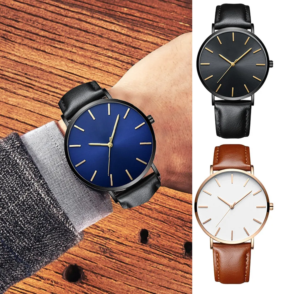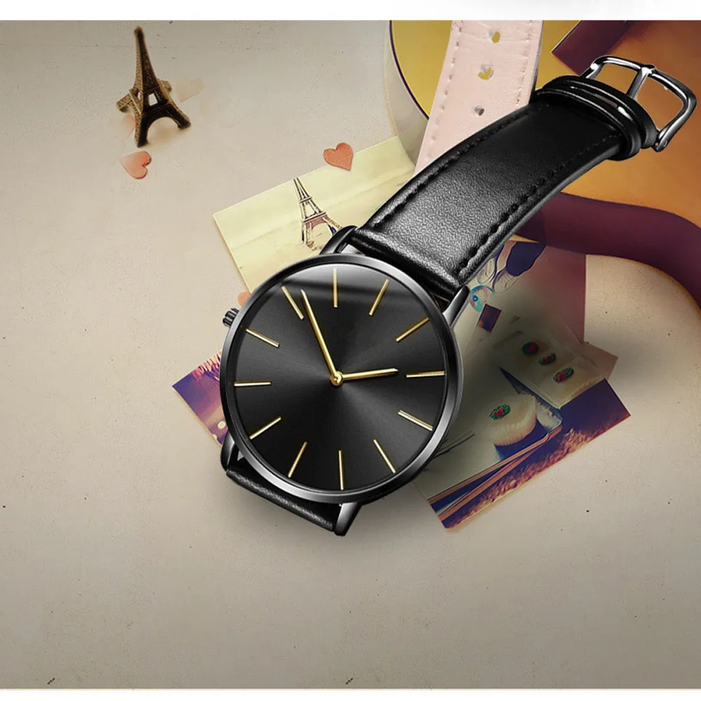 Винтажные ультра тонкий кожаный ремень мужские часы Роскошные модные бизнес большой сплошной циферблат повседневные мужские кварцевые часы Relogio Masculino