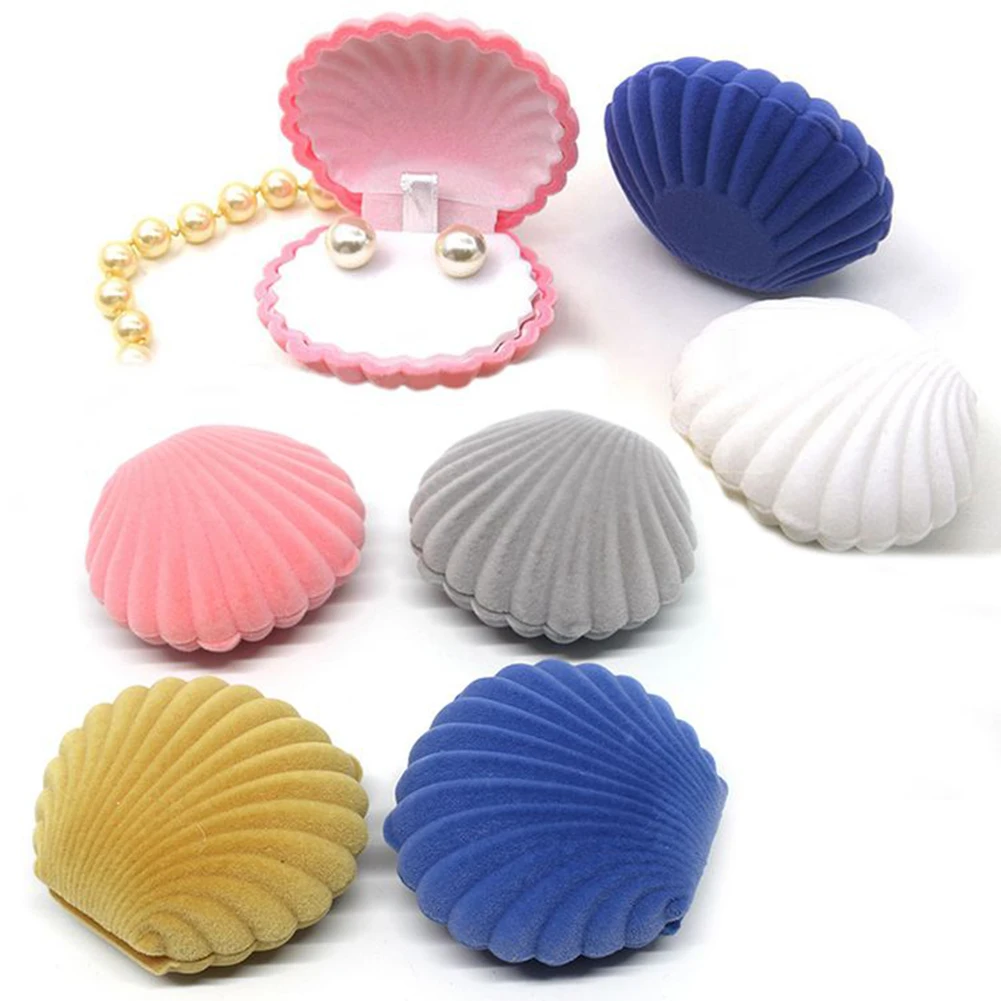 Модный женский бархатный чехол в форме ракушки для ювелирных изделий, коробка для ожерелья, серег, кольца