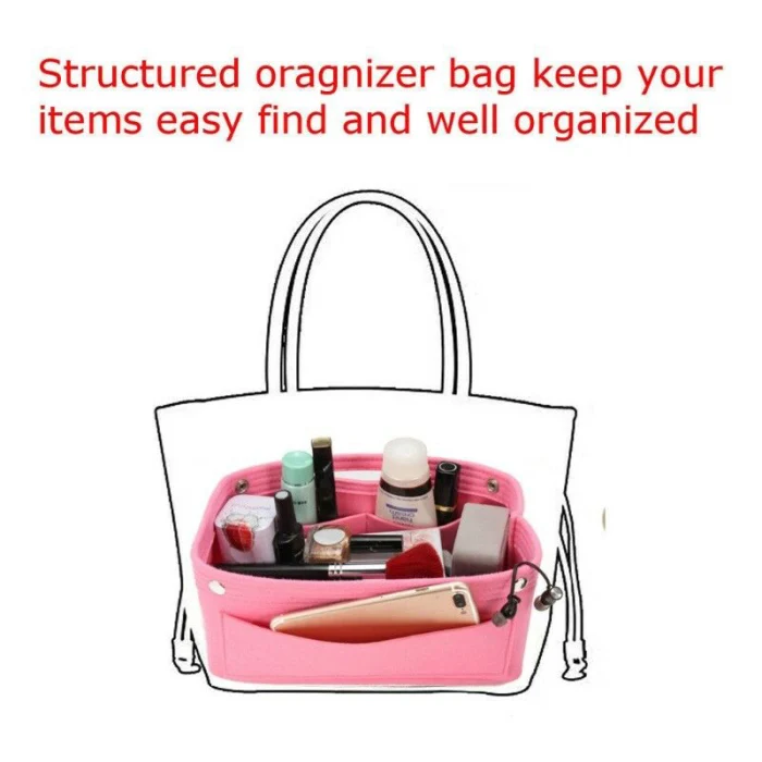 1. Высококачественный материал-наш органайзер для сумки для женщин изготовлен из высокопрочного войлока, легкий и износостойкий.