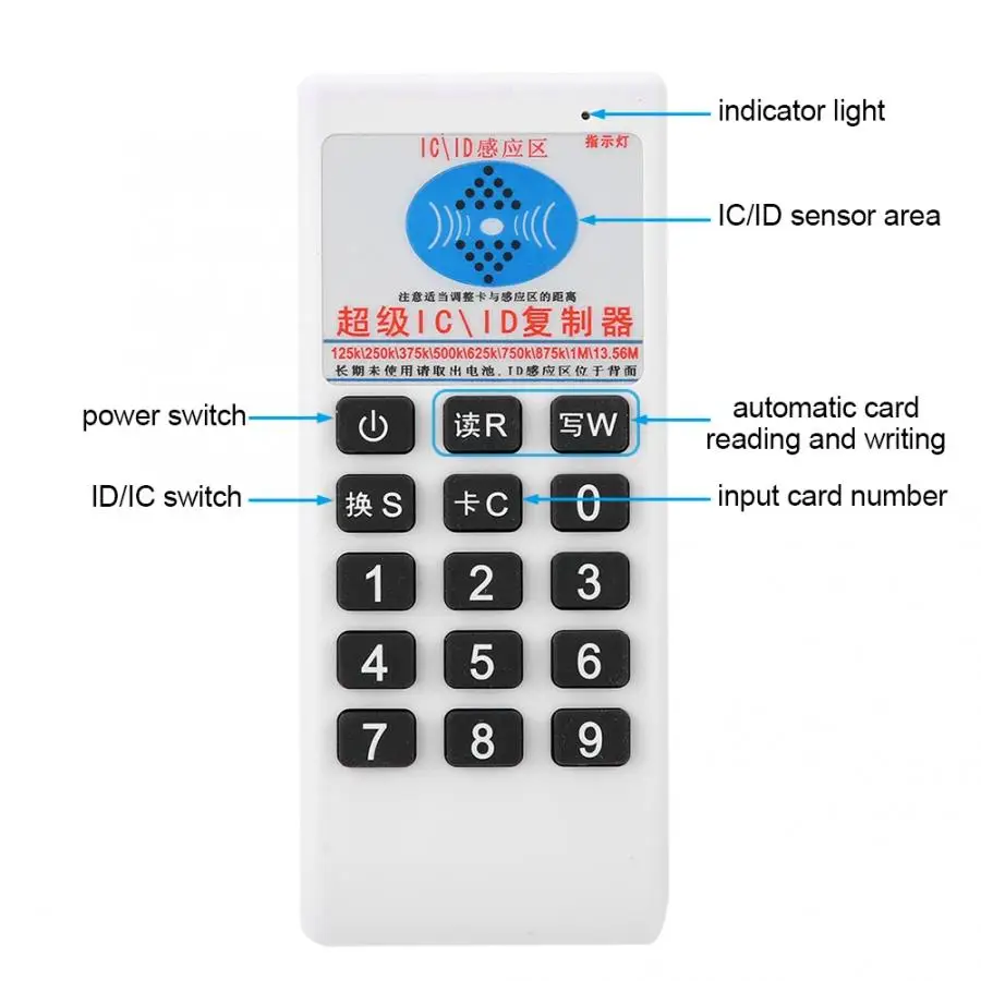 1. Данный дубликатор может копировать 125/250/375/500 кГц алгоритм многочастотного карты и 13,56 МГц без шифрования микросхемой чипом микропроцессорные карты.